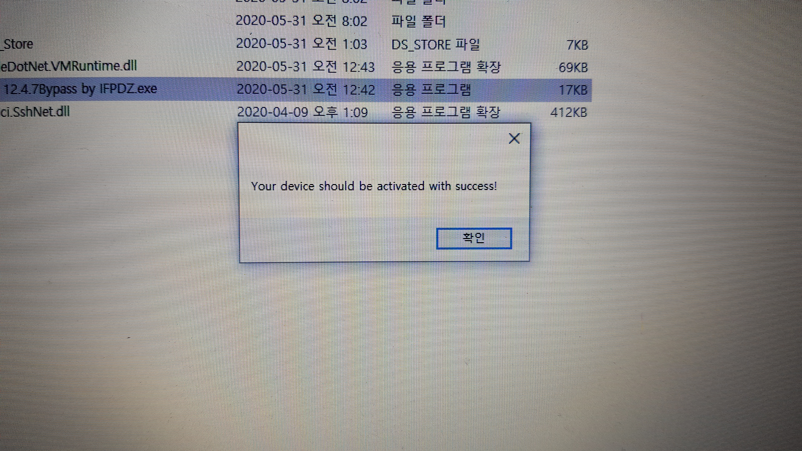 성공 했다는 메시지가 나오면 홈버튼에서도 손을 떼면 된다.