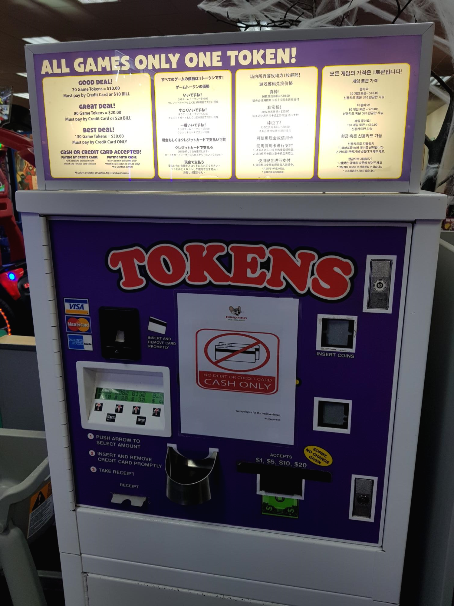 한 게임에는 1토큰이 필요하기에 입장하자 마자 카운터 또는 토큰 자판기에서 토큰을 구매한다.