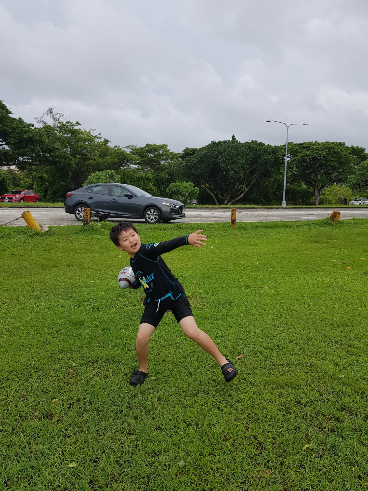 로스에서 럭비공을 사자마자 바로 이파오 해변의 공원으로 나와 오랜만에 아들과 공놀이에 빠졌다.