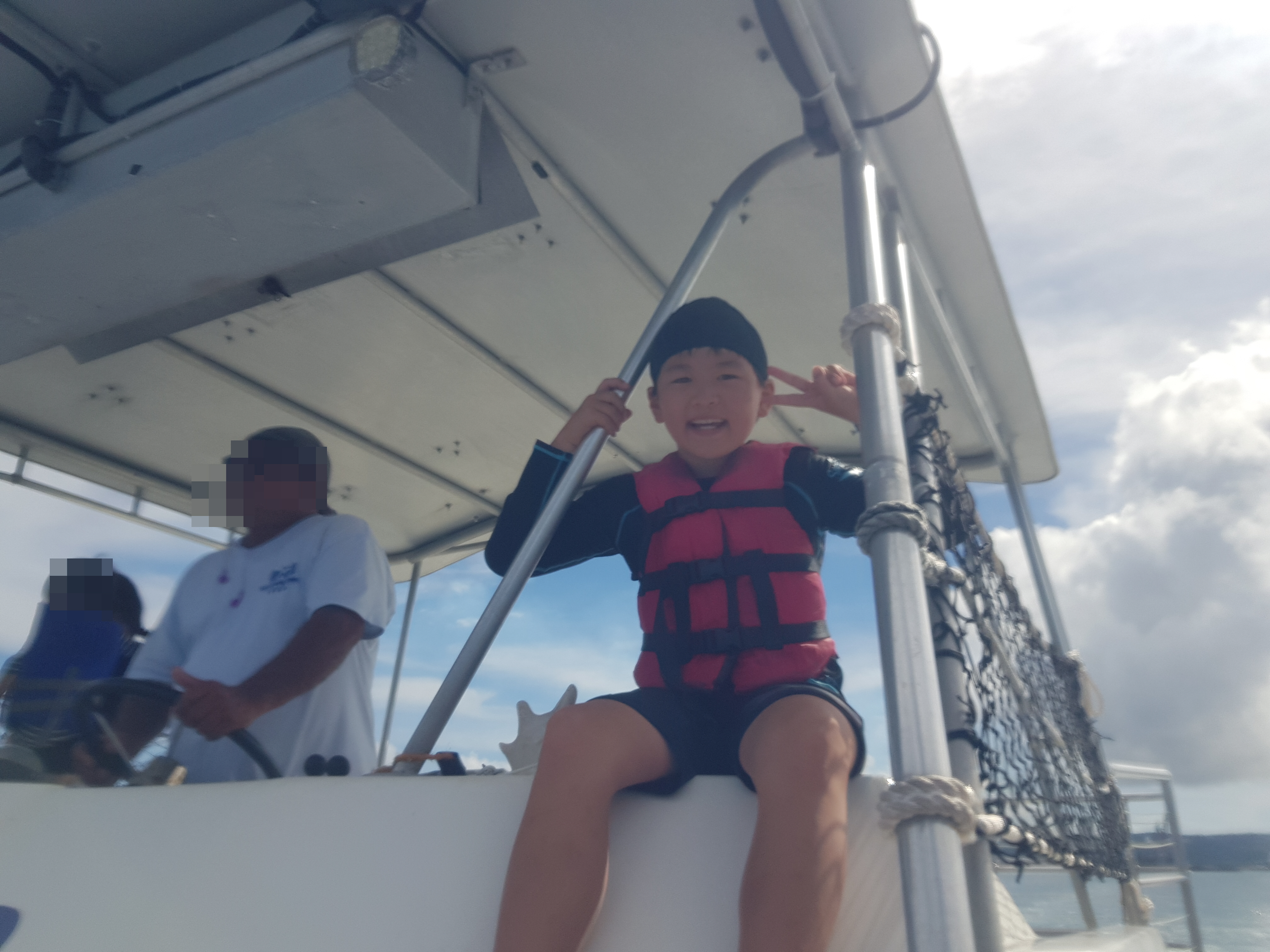 아이들은 반드시 구명조끼를 입고 있어야 하고, 배에서는 안쪽에 마련된 선을 항상 잡고 있어야 한다.
