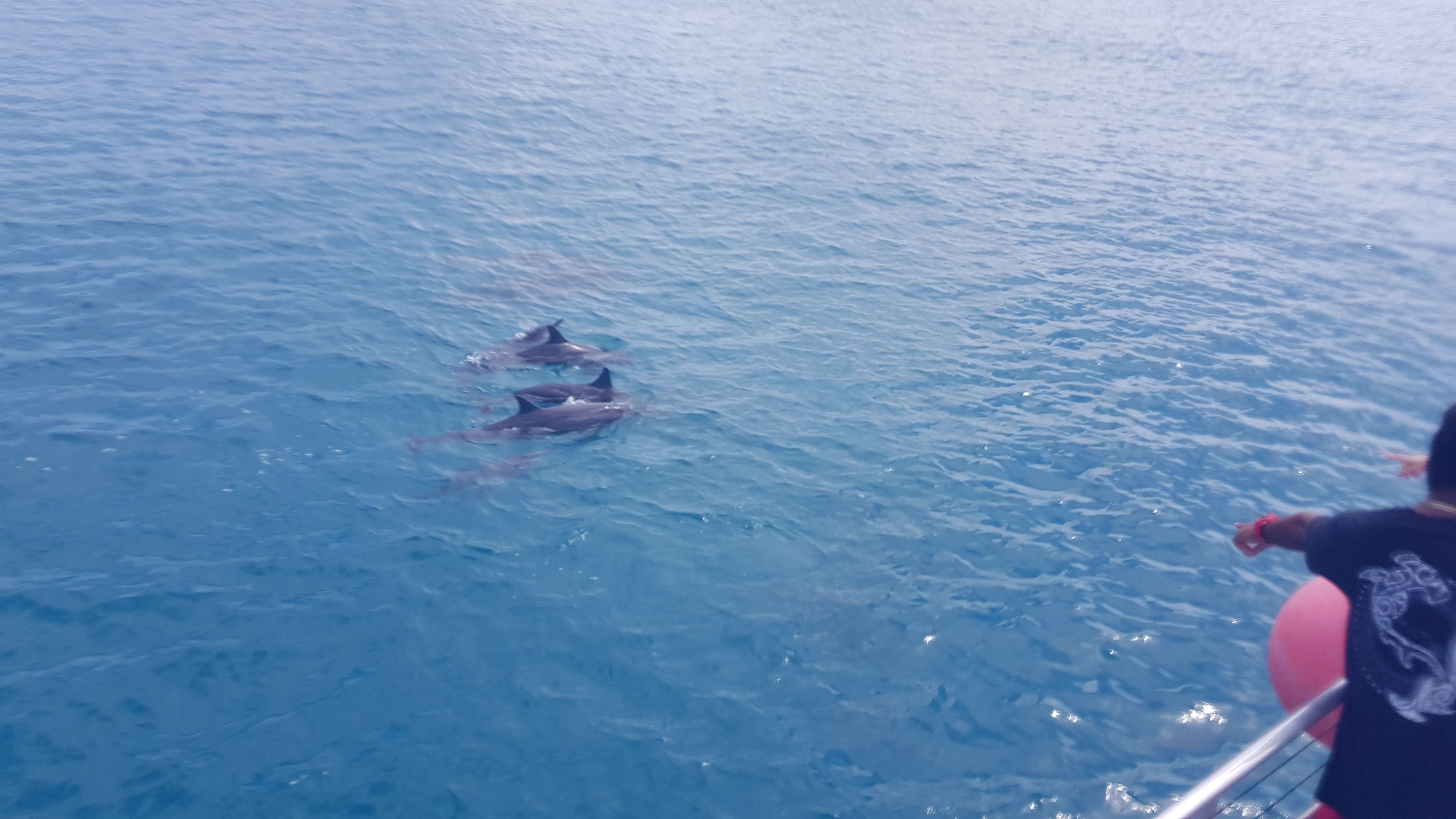 돌고래를 보러 가는 와중에 바다거북이가 유영하는 것도 구경하고, 날치가 무리를 이뤄 날아가는 것도 구경했다.