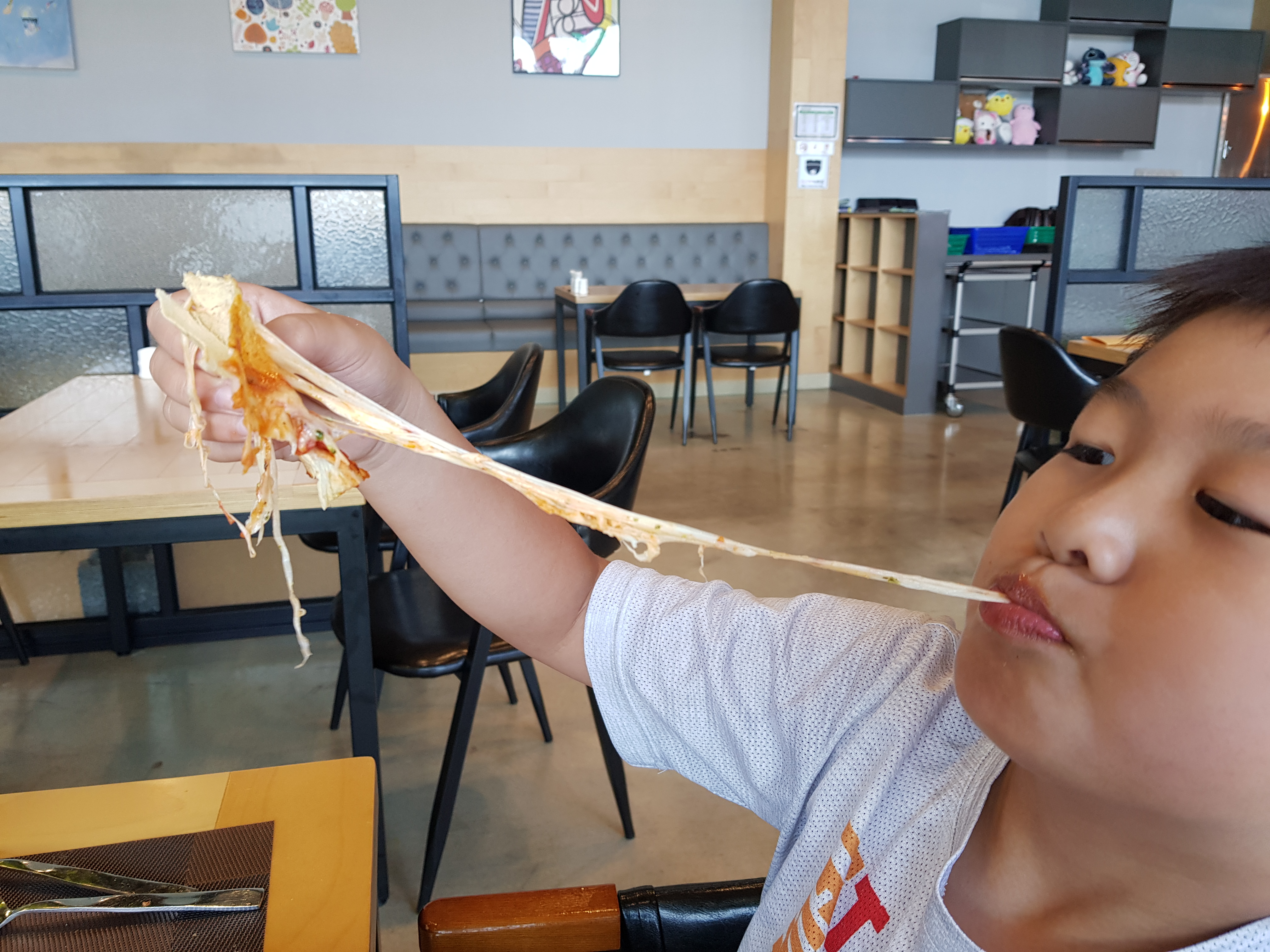 아들 녀석 혼자서 피자 반판을 그자리에 먹어 치웠다.