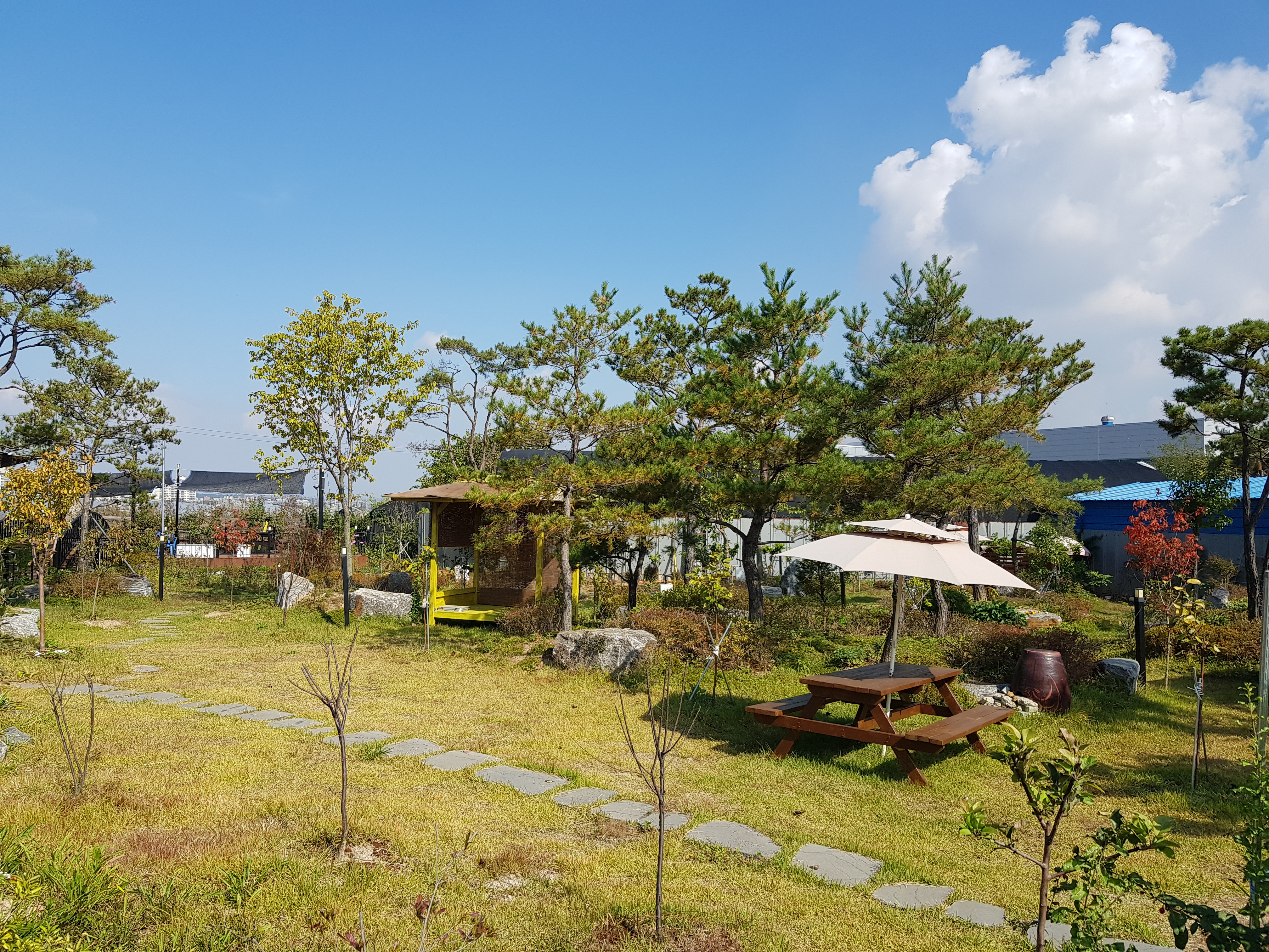 바비큐장은 마치 정원처럼 꾸며져 있어서 굳이 캠핑을 나가지 않더라도 즐겁게 놀 수 있다.