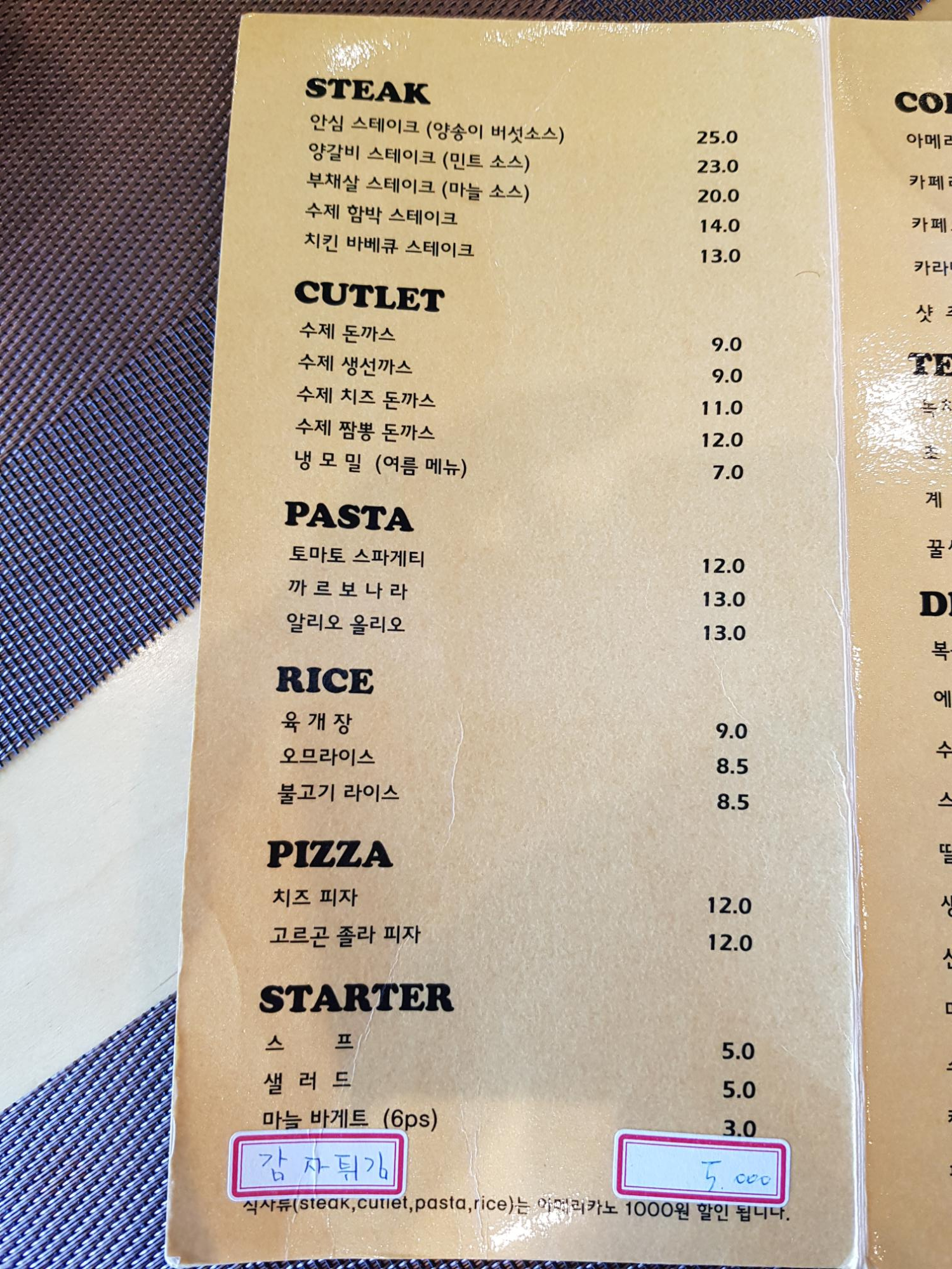파스타, 돈가스, 스테이크등을 판매하나 보다 싶어 식사를 할 요량으로 들어선다.
