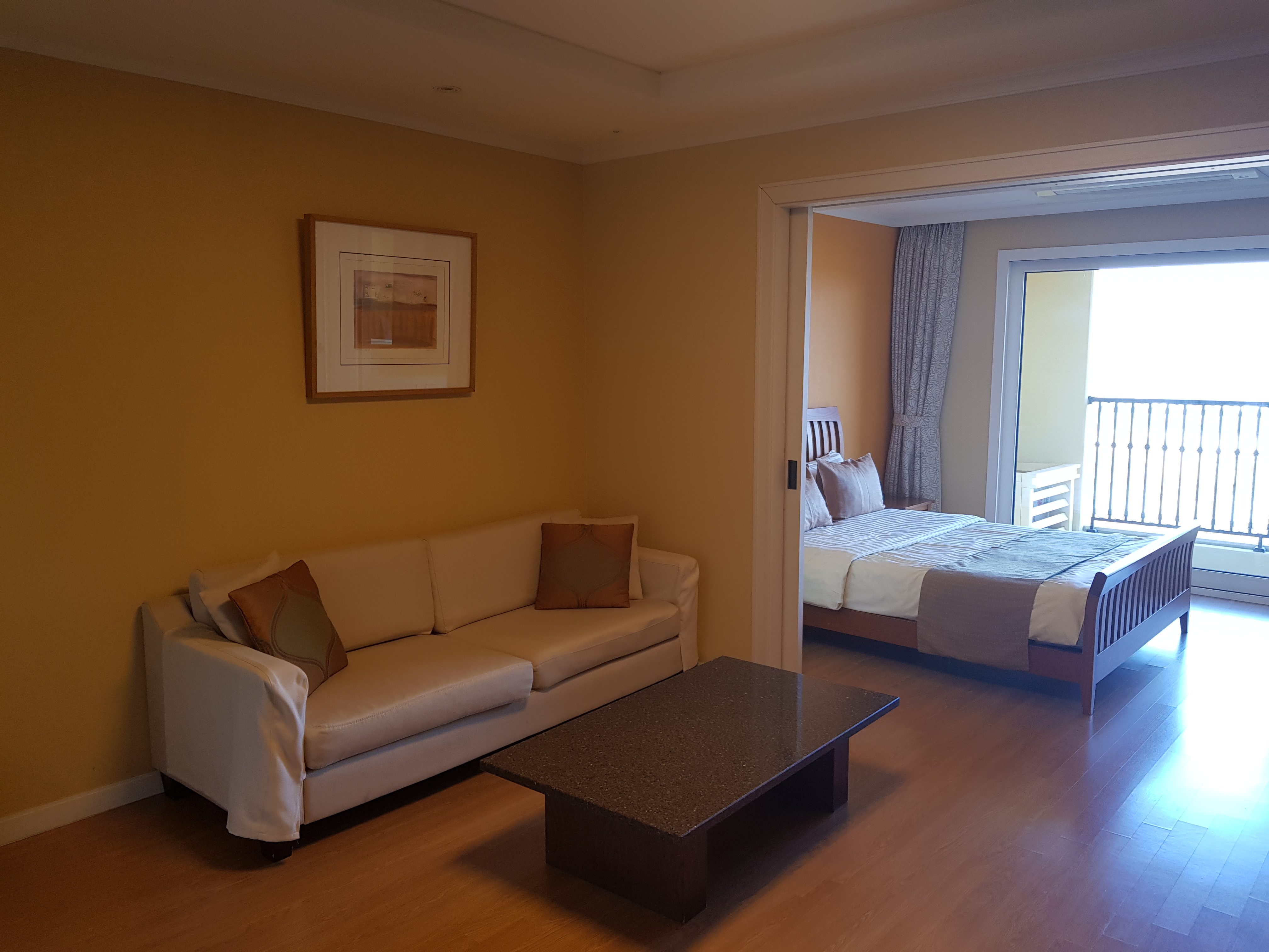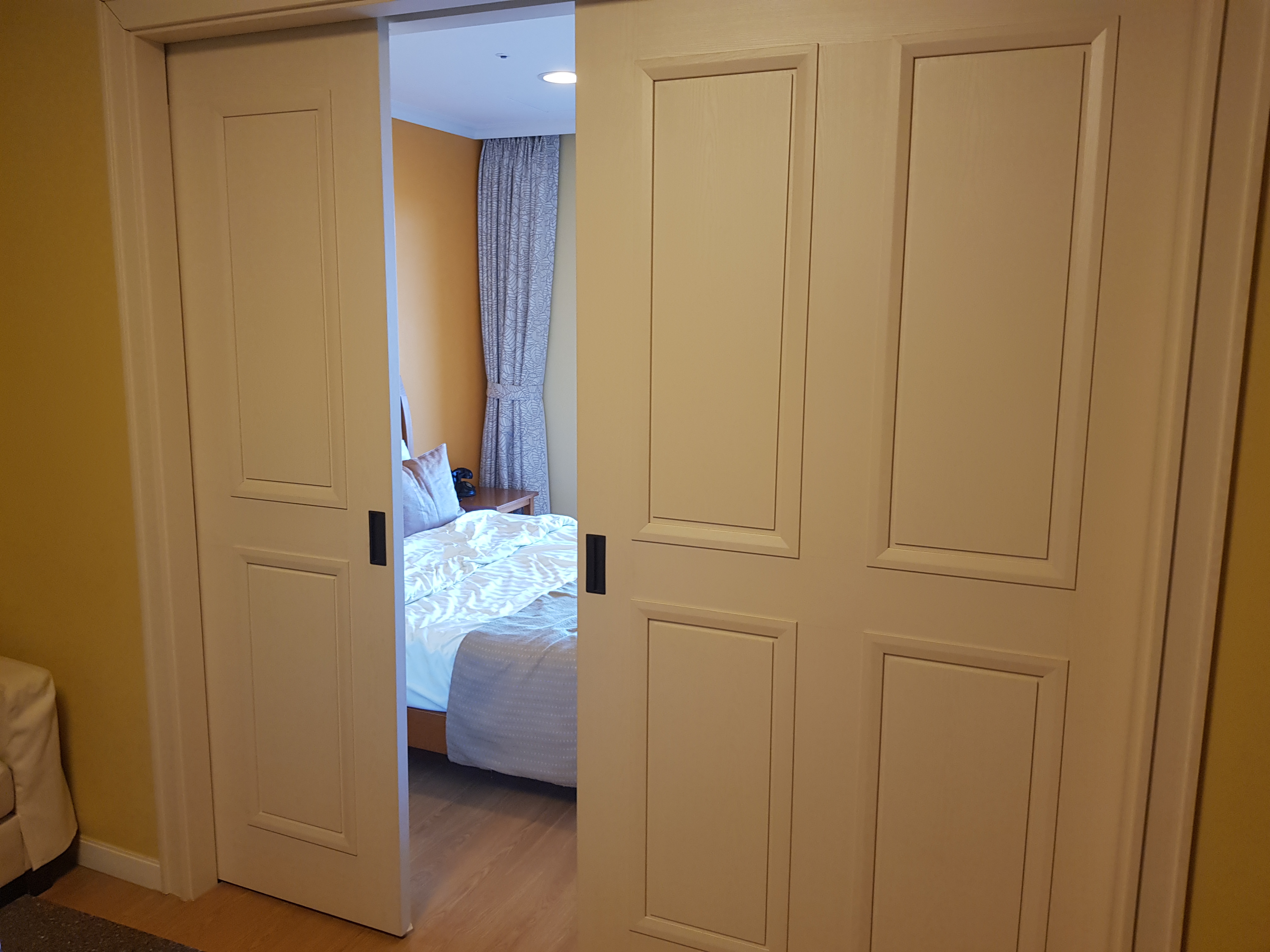 거실과 침실이 원룸형이라 넓어 보였는데, 침대와 거실을 구분할 수 있는 미닫이 문이 숨겨져 있다.
