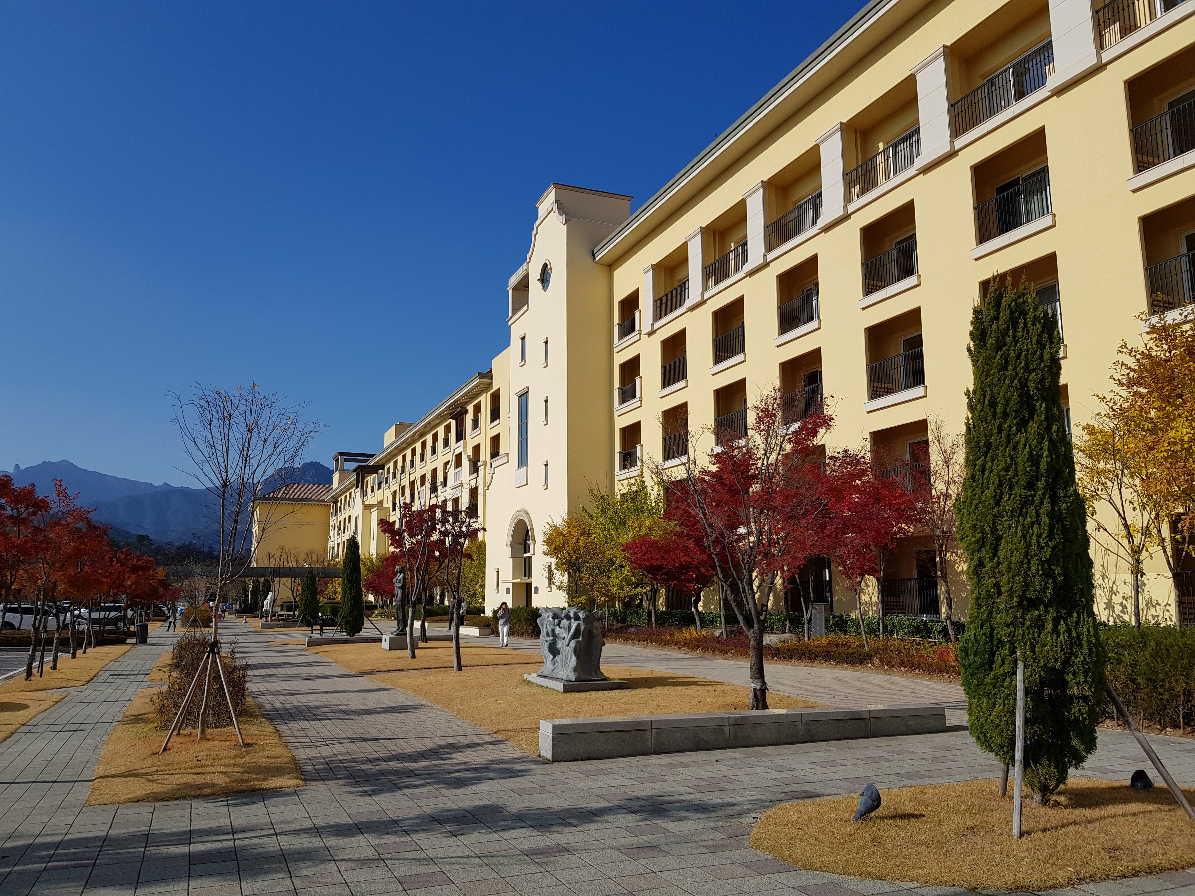 유럽풍의 느낌이 강한 콘도의 우아한 자태도 하늘과 참 잘 어울린다.