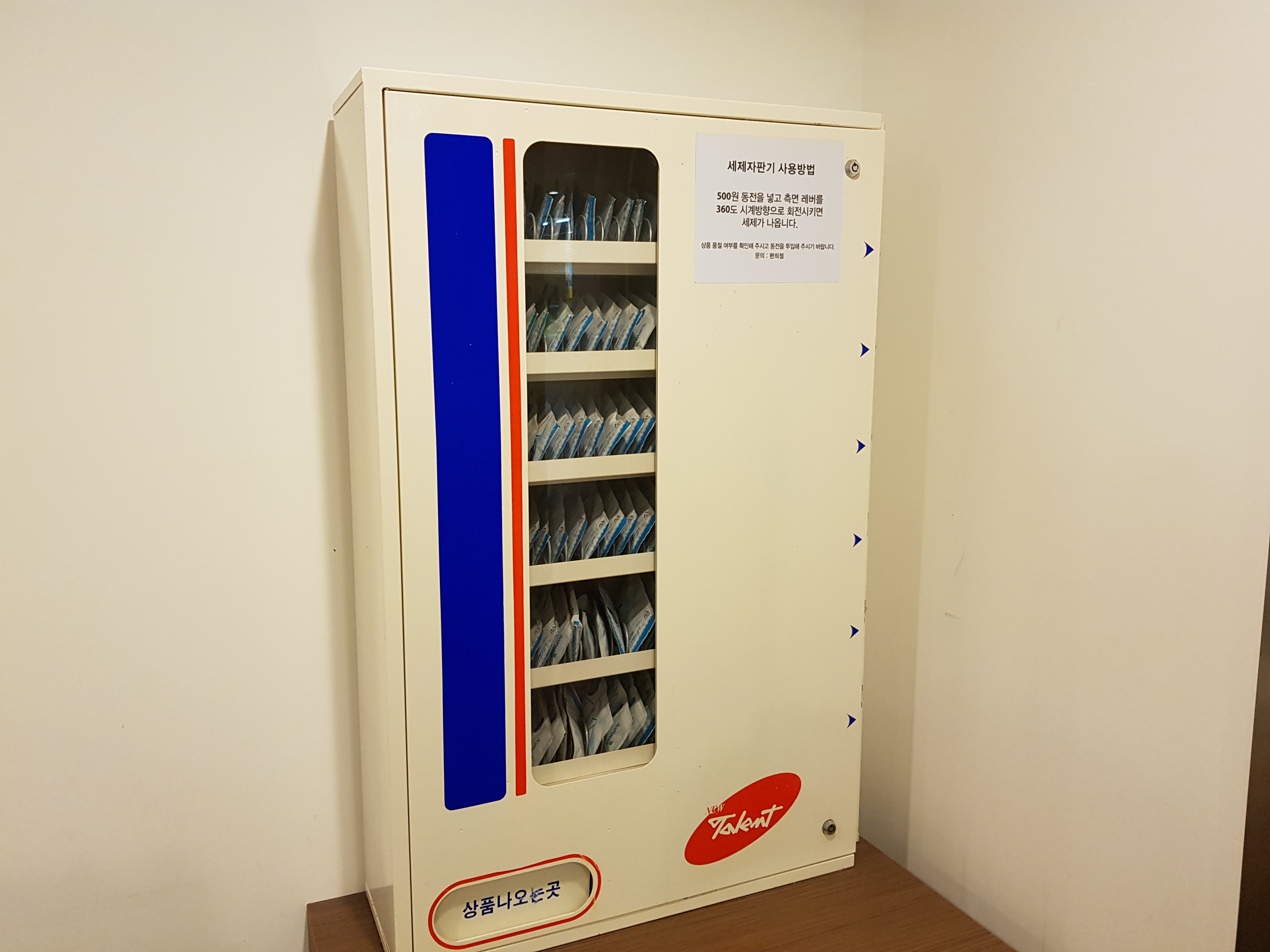 이처럼 세탁실 바로 옆에 세제자판기가 있으니 편리하게 세탁을 할 수 있다.