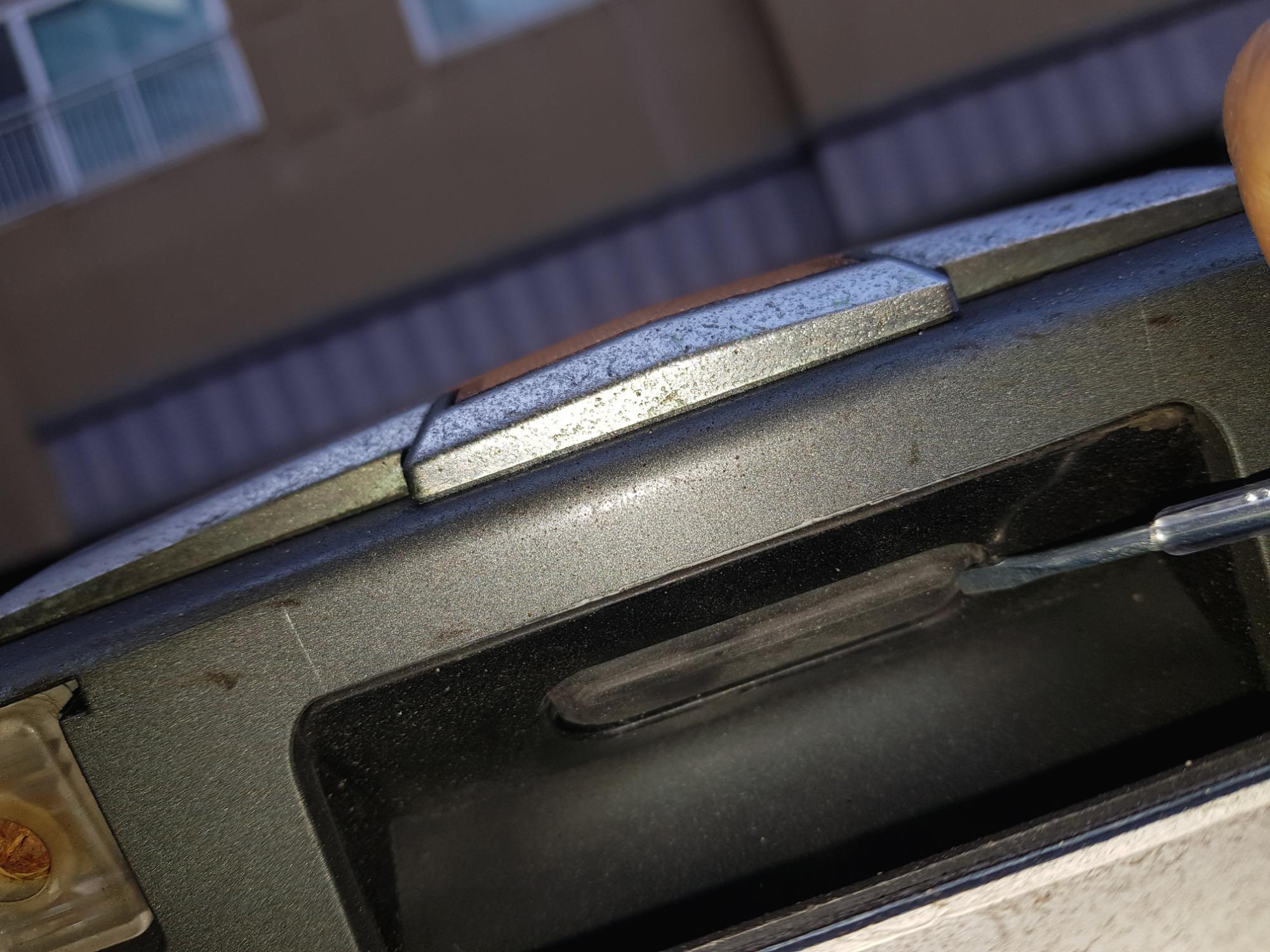 트렁크를 열 때 항상 손으로 눌러주는 스위치를 작고 얇은 마이너스(-) 드라이버로 스위치 고무 옆을 눌러 빼낸다.