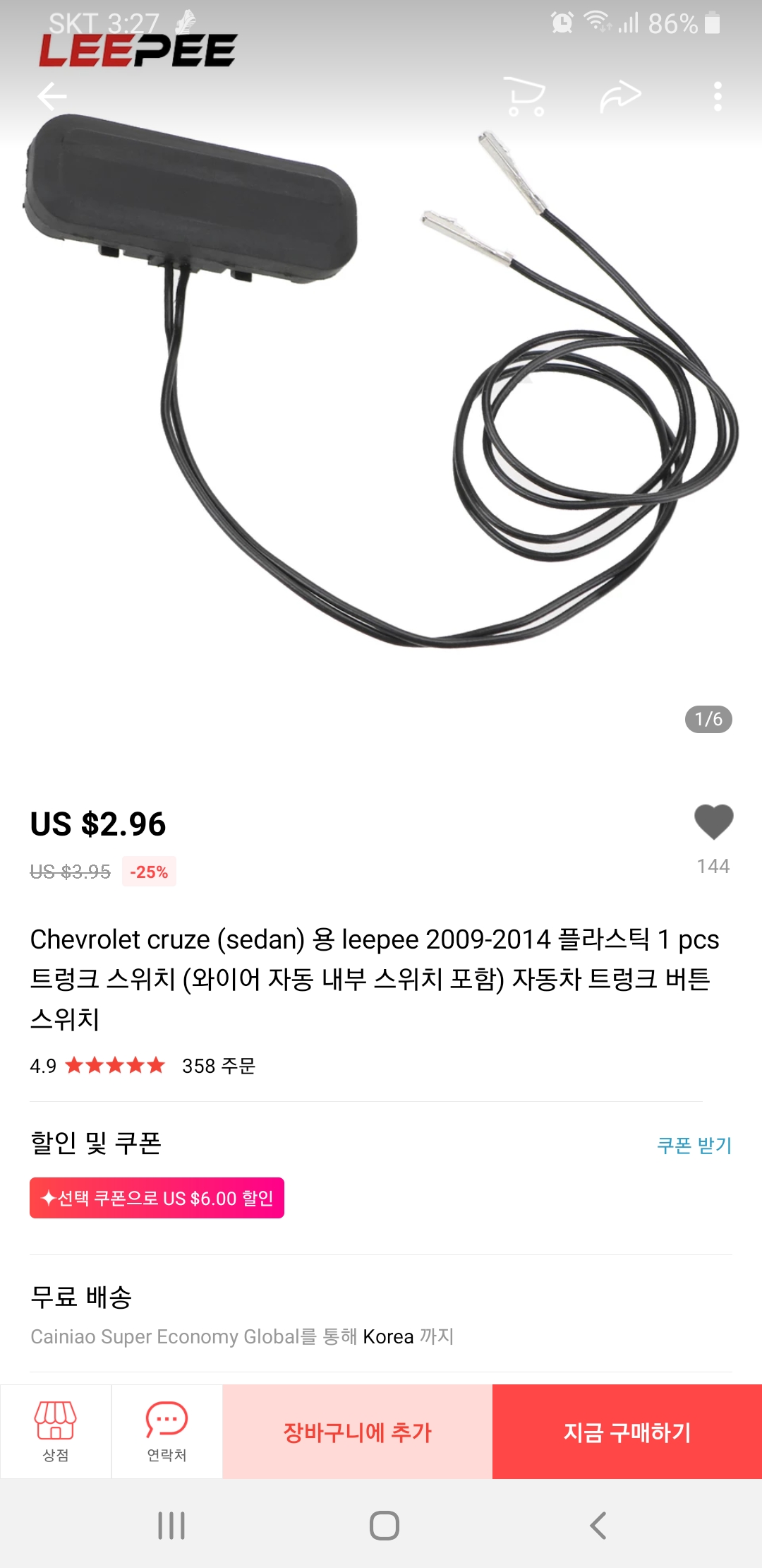 AliExpress에서 쉐보레 크루즈 트렁크 스위치 버튼을 구매를 했다.