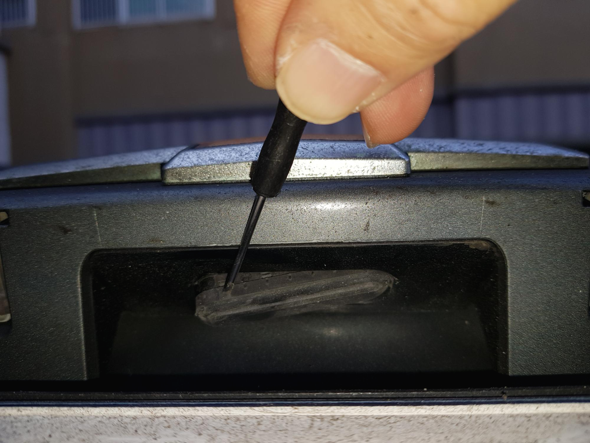 마이너스(-) 표시 드라이버로 뚜껑을 연다. 작은 드라이버는 부서진다. 크고 굻은 드라이버로 해야 한다.
