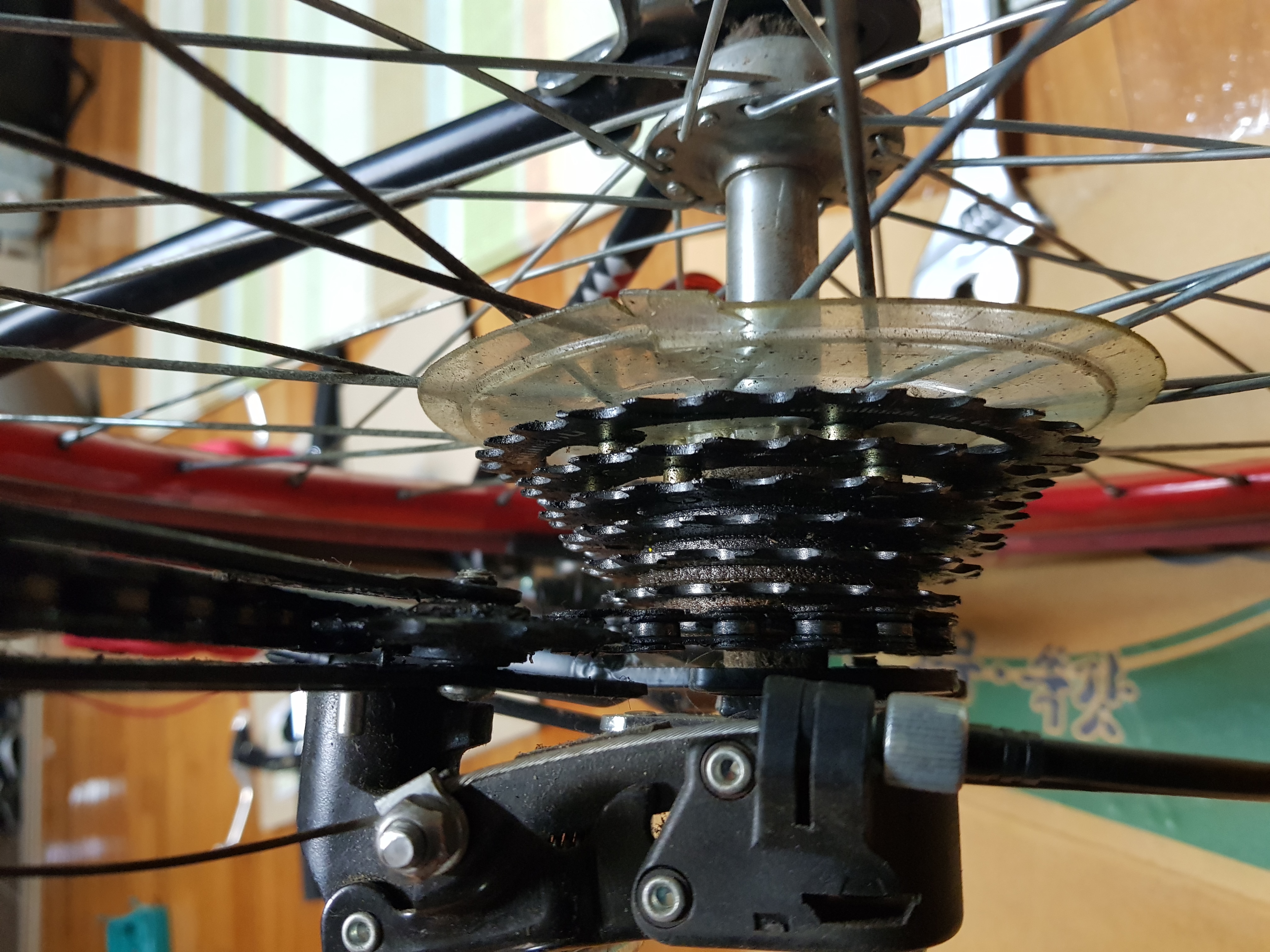 기어가 높이 물려 있으면 바퀴를 제거 하거나 다시 부착할 때 빡빡할 수 있어 저단으로 위치 해서 넓게 사용한다.