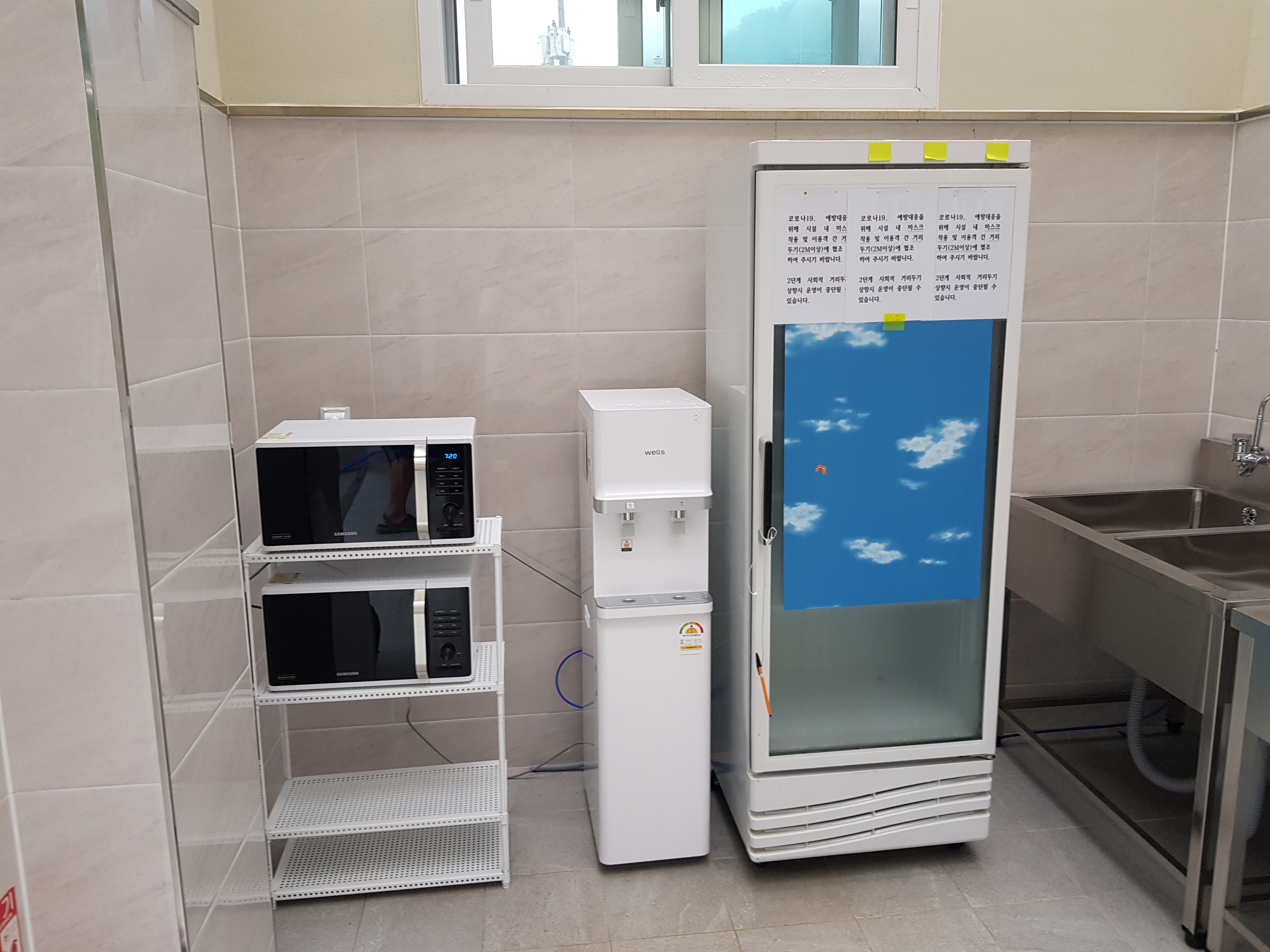 세척실에는 공용으로 사용할 수 있는 냉장고가 마련되어 있기에 쉽사리 상할 수 있는 음식물들을 어려움 없이 보관 할 수 있다.