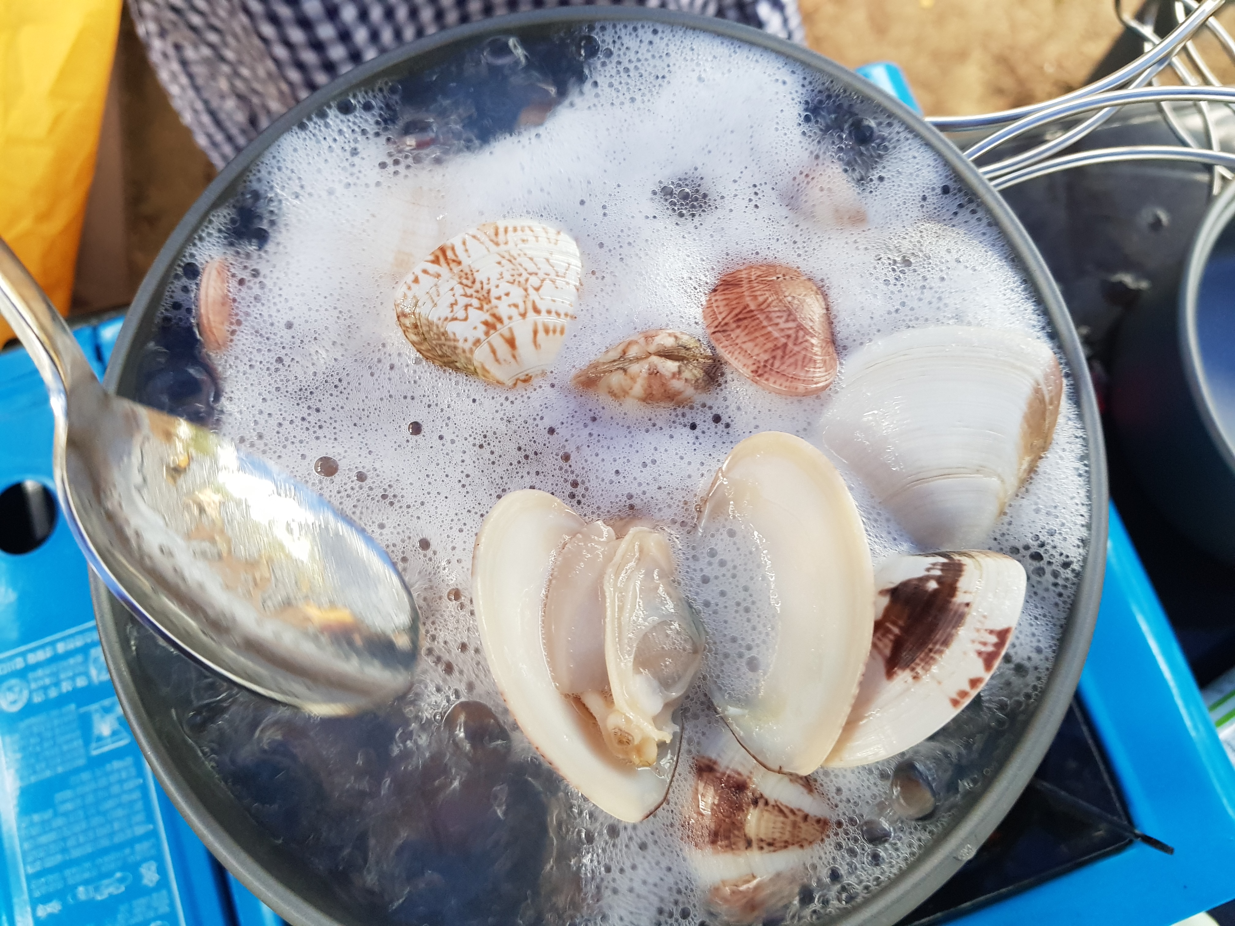 조개가 많이 있지만, 굳이 많이 잡을 필요는 없다는 생각에 한끼만 충분히 먹을 정도로 잡는다.