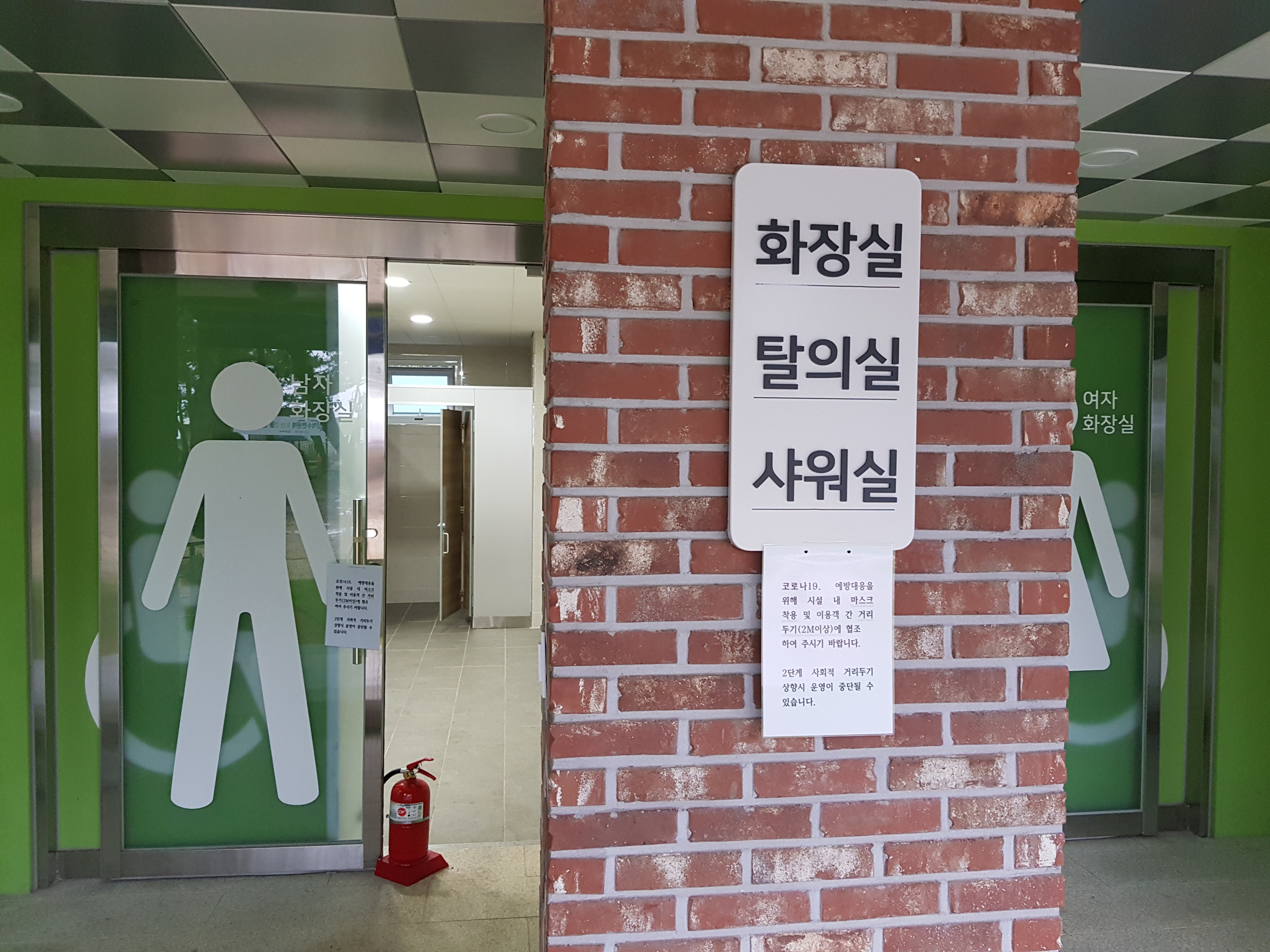 관리동 건물의 1층에 화장실, 탈의실 및 샤워실도 마련되어 있다.