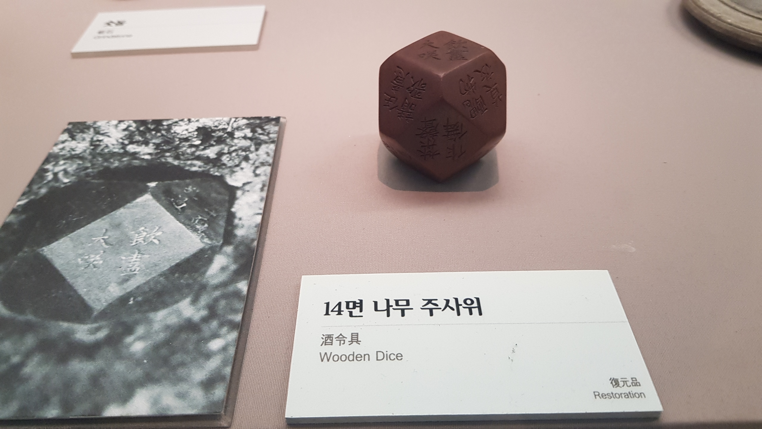 주령구의 각 면에는 다양한 벌칙이 적혀 있어 신라인들의 음주 풍류를 보여준다.