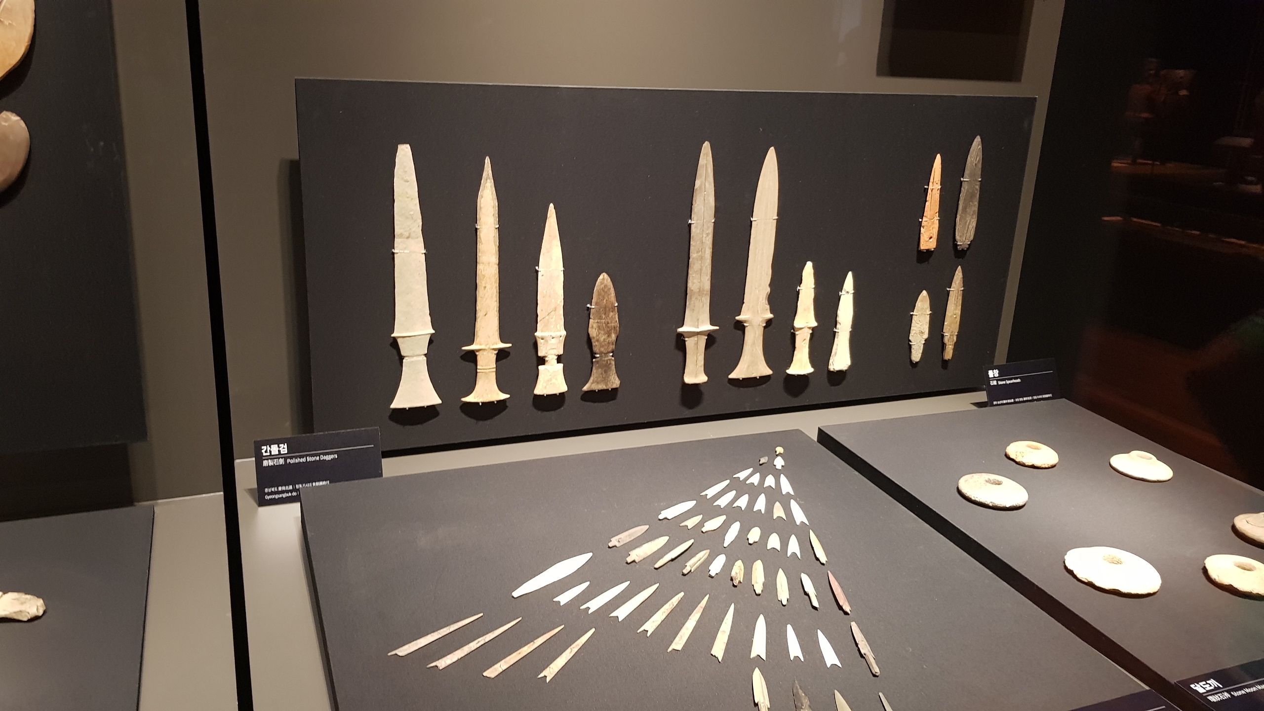 구석기와 신석기의 기준이라 할 수 있는 부분이 돌을 조각난 모양 그대로 사용하는 것인지, 생활 또는 사냥에 필요한 모양으로 돌을 갈아 만드는 것 인지로 구분할 수 있다는데, 참으로 다양한 석기들이 보여진다.