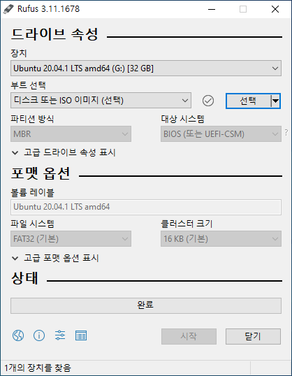 유분투 이미지를 다운 받는 동안, 이미지 파일을 부팅이 가능한 USB로 만들어 주기 위한 rufus를 다운 받는다.