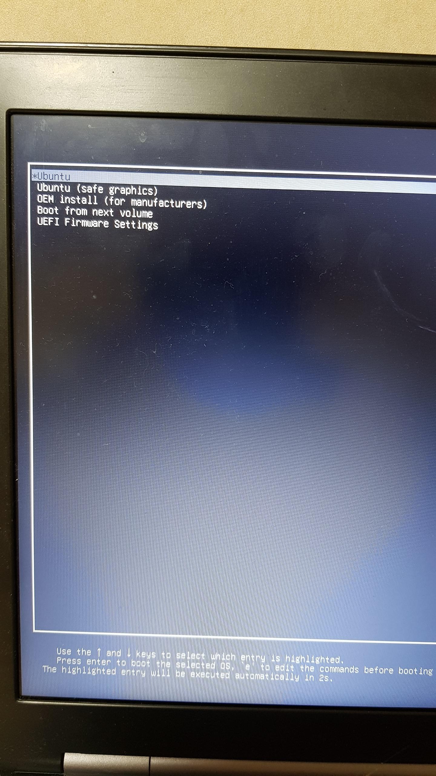 기본적으로 맨 처음에 선택된 ubuntu를 선택하고 엔터를 누르면 된다.