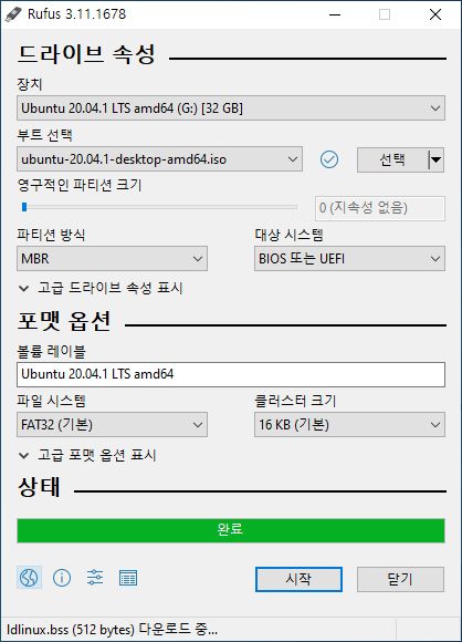 USB 디스크의 성능에 따라 약간의 차이가 발생하겠지만, 조금 참고 기다리게 되면 부팅디스크가 완성이 된다.