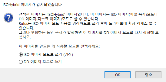 받아 놓은 Ubuntu 이미지 파일을 선택하고, “ISO 이미지 모드로 쓰기 (권장)”을 선택 한다.