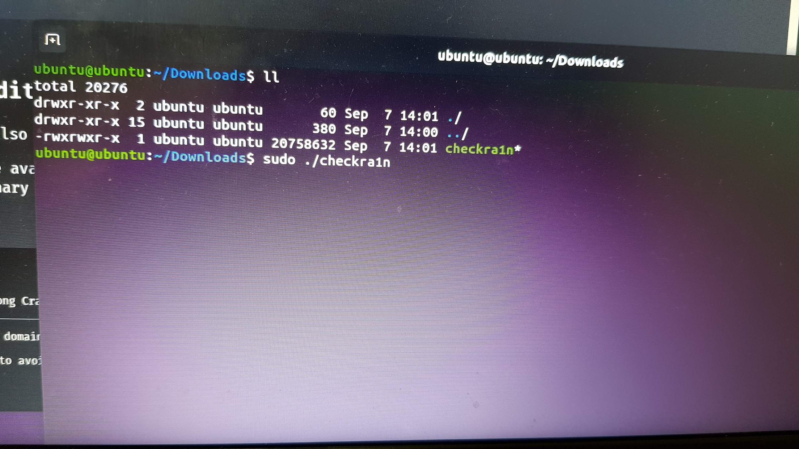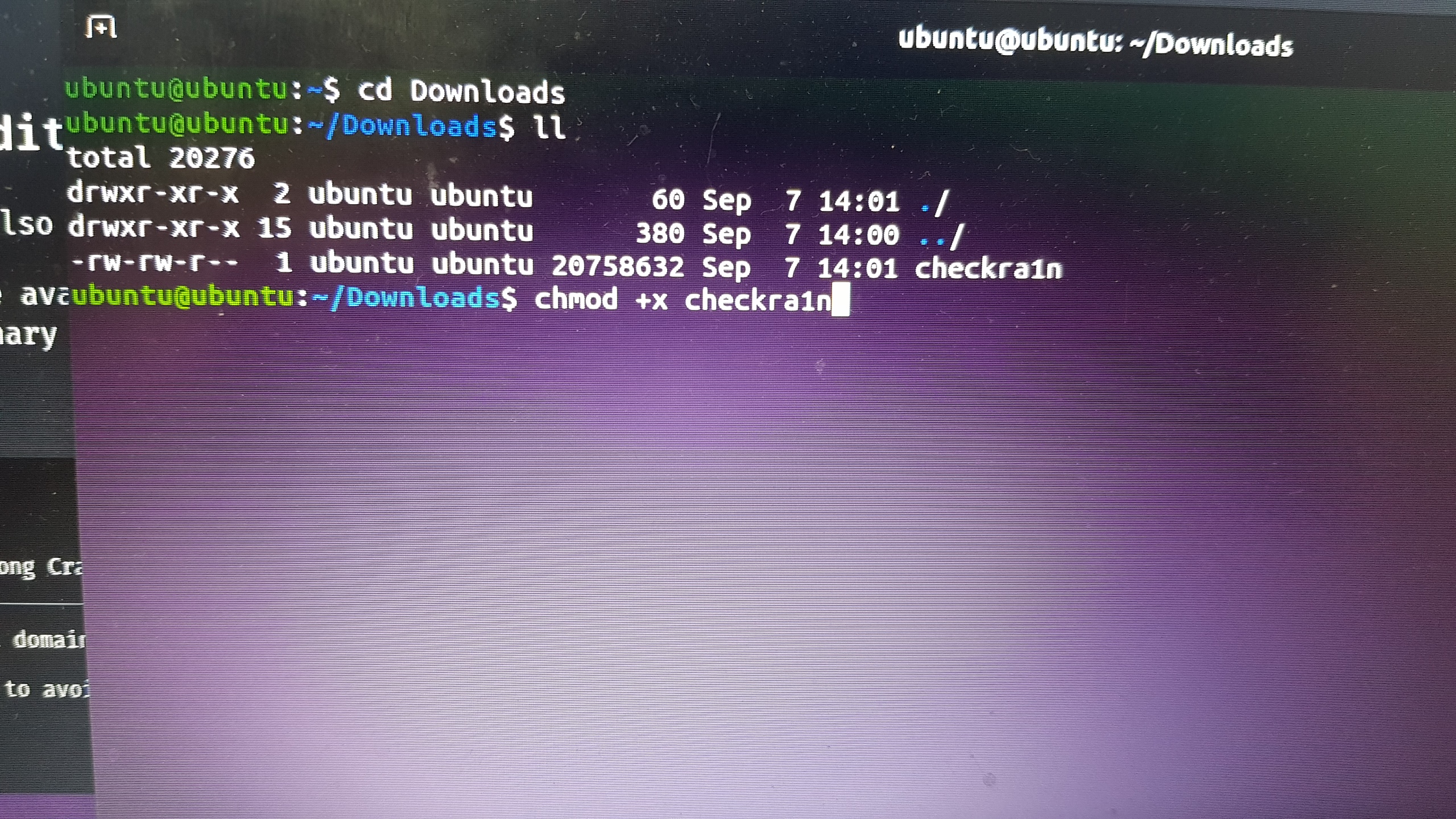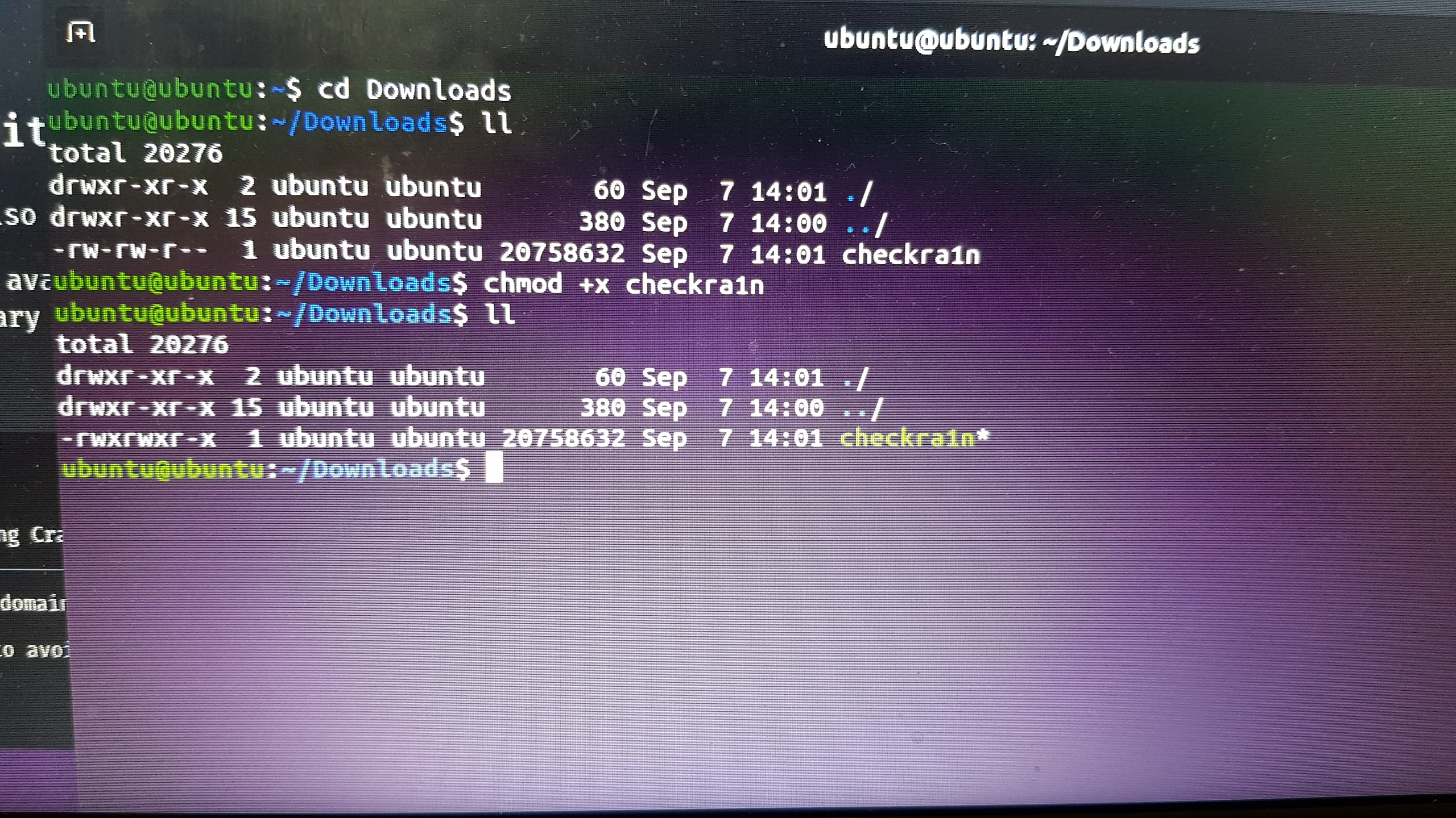 “ chmod +x checkra1n “ 명령으로 실행 권한을 부여 한다.