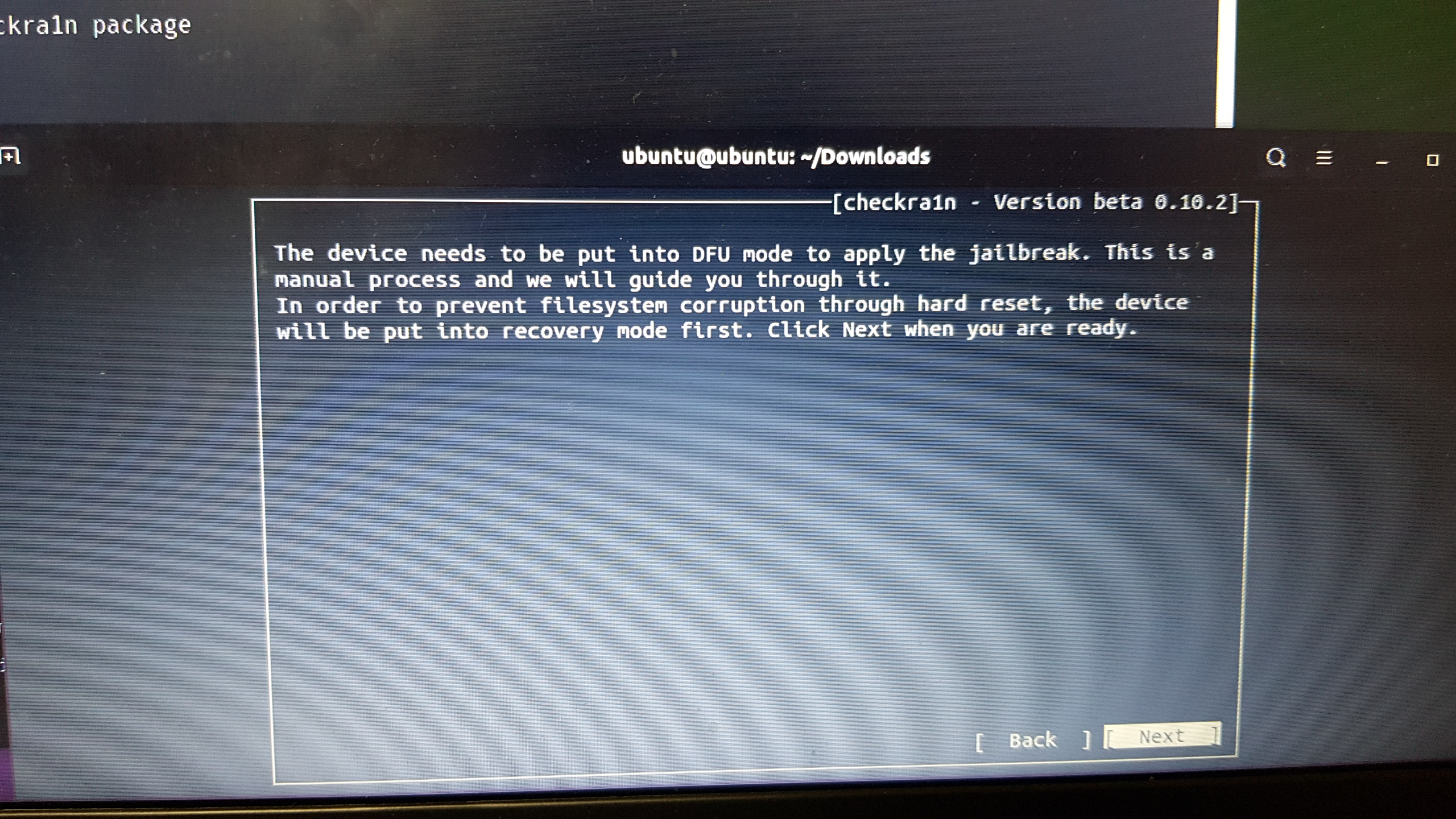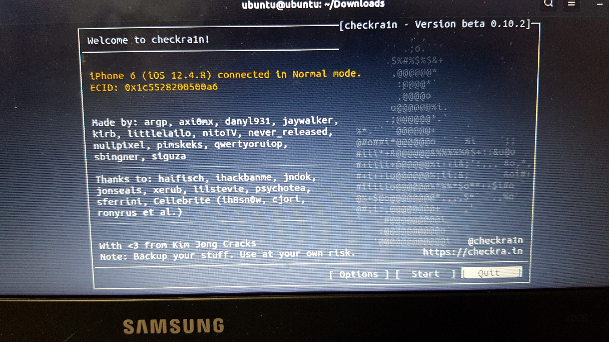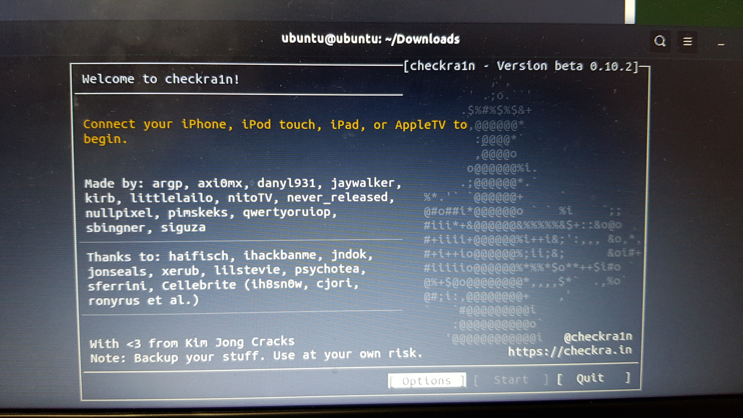 Checkra1n 초기 화면에서 “ Quit “를 선택 하여 checkra1n 프로그램을 종료 한다.