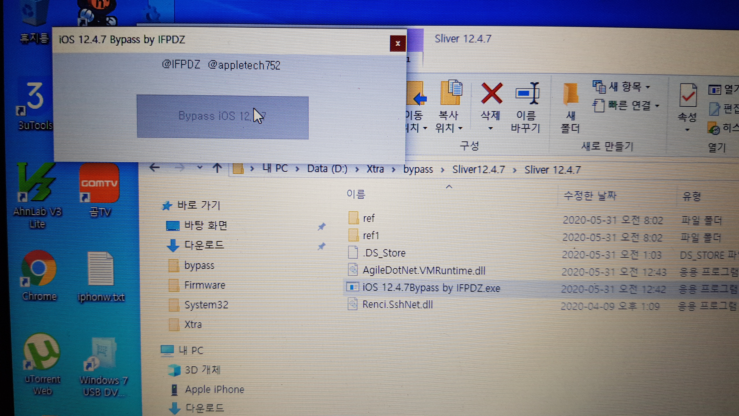 Bypass 프로그램은 http://appletech752.com 에서 silver를 다운 받아 사용한다.