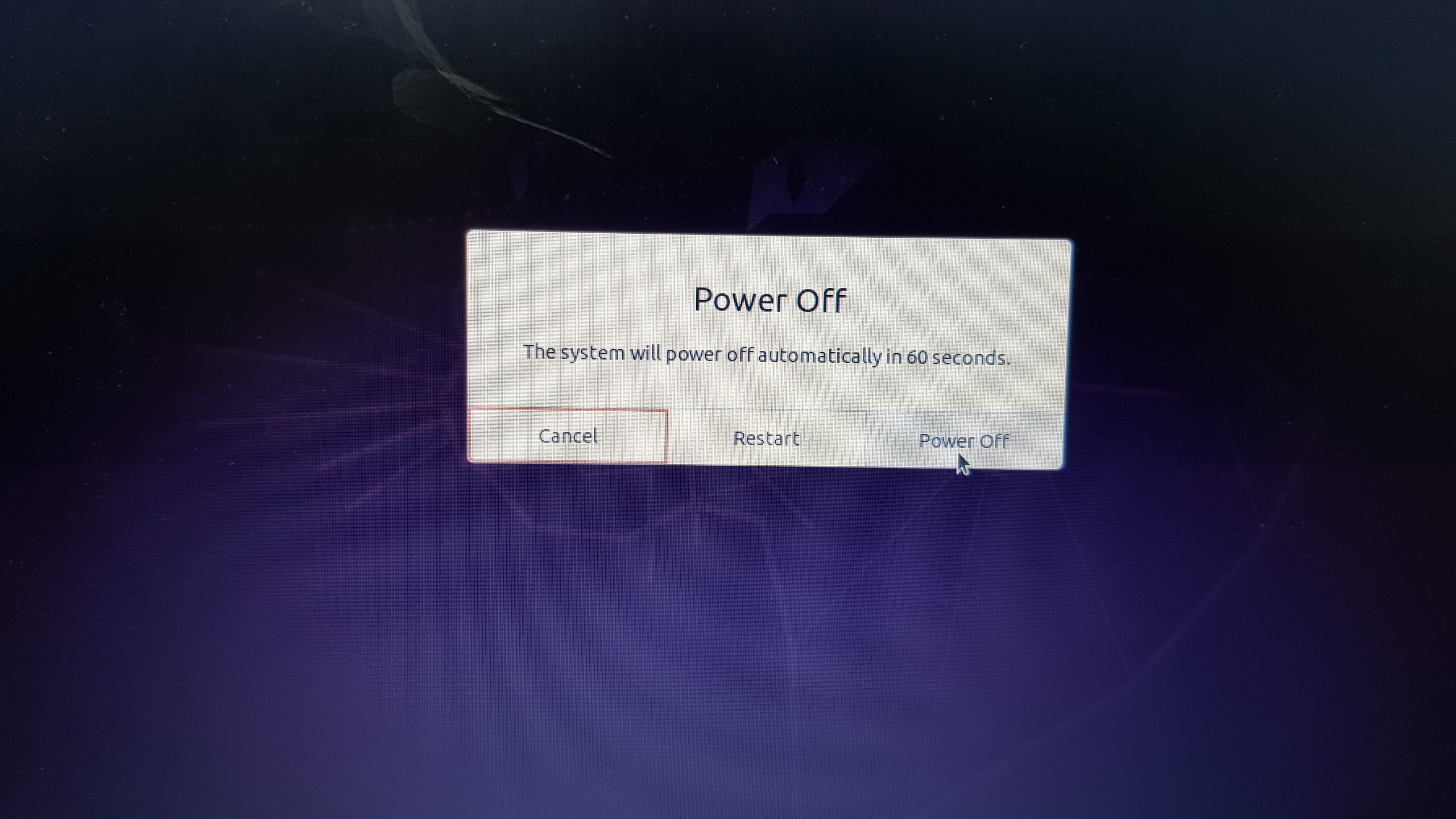 60초 대기 후에 자동 동료되나 직접 “ Power Off “를 선택 하여 종료 할 수 있다.