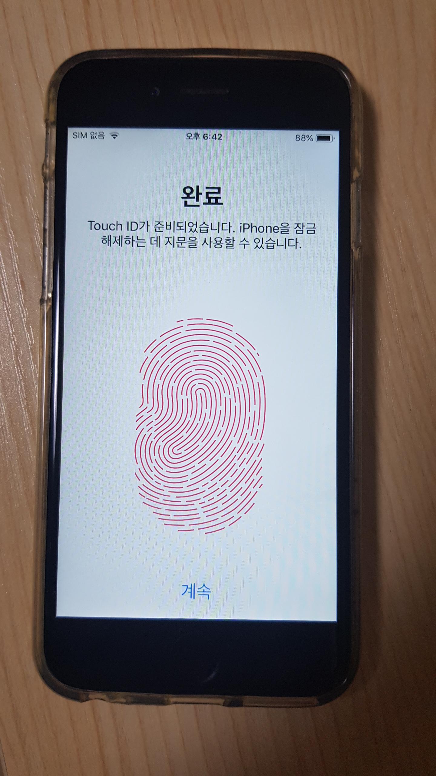 초기화한 폰이었다면 터치ID도 등록하여 사용할 수 있다.