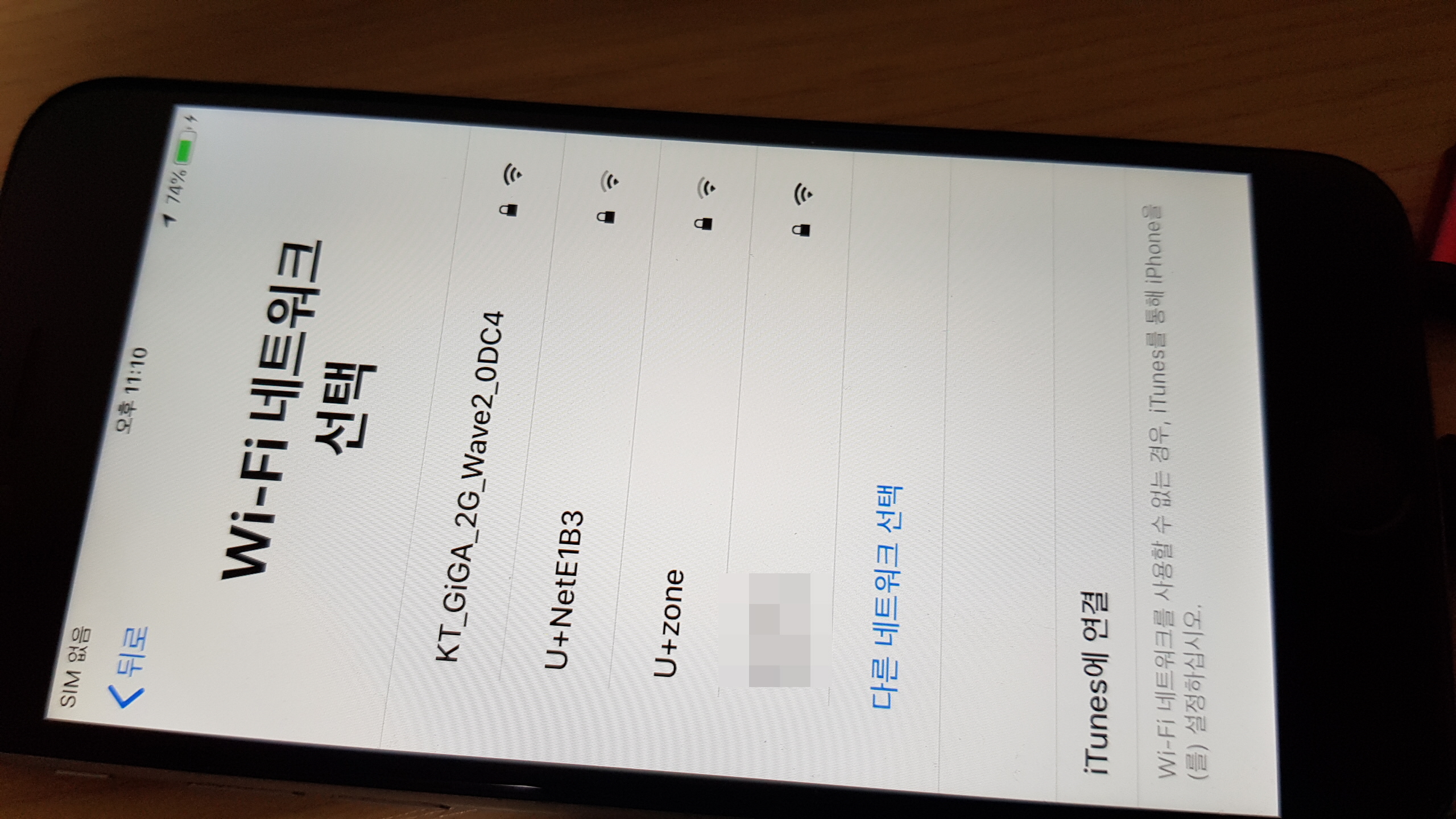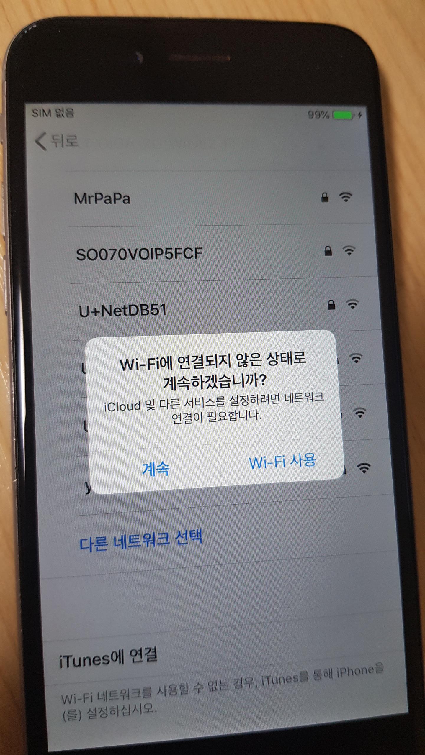 Silver가 성공 후, wi-fi 선택 화면의 아래 쪽에 “ iTunes에 연결 “을 선택 한다.
