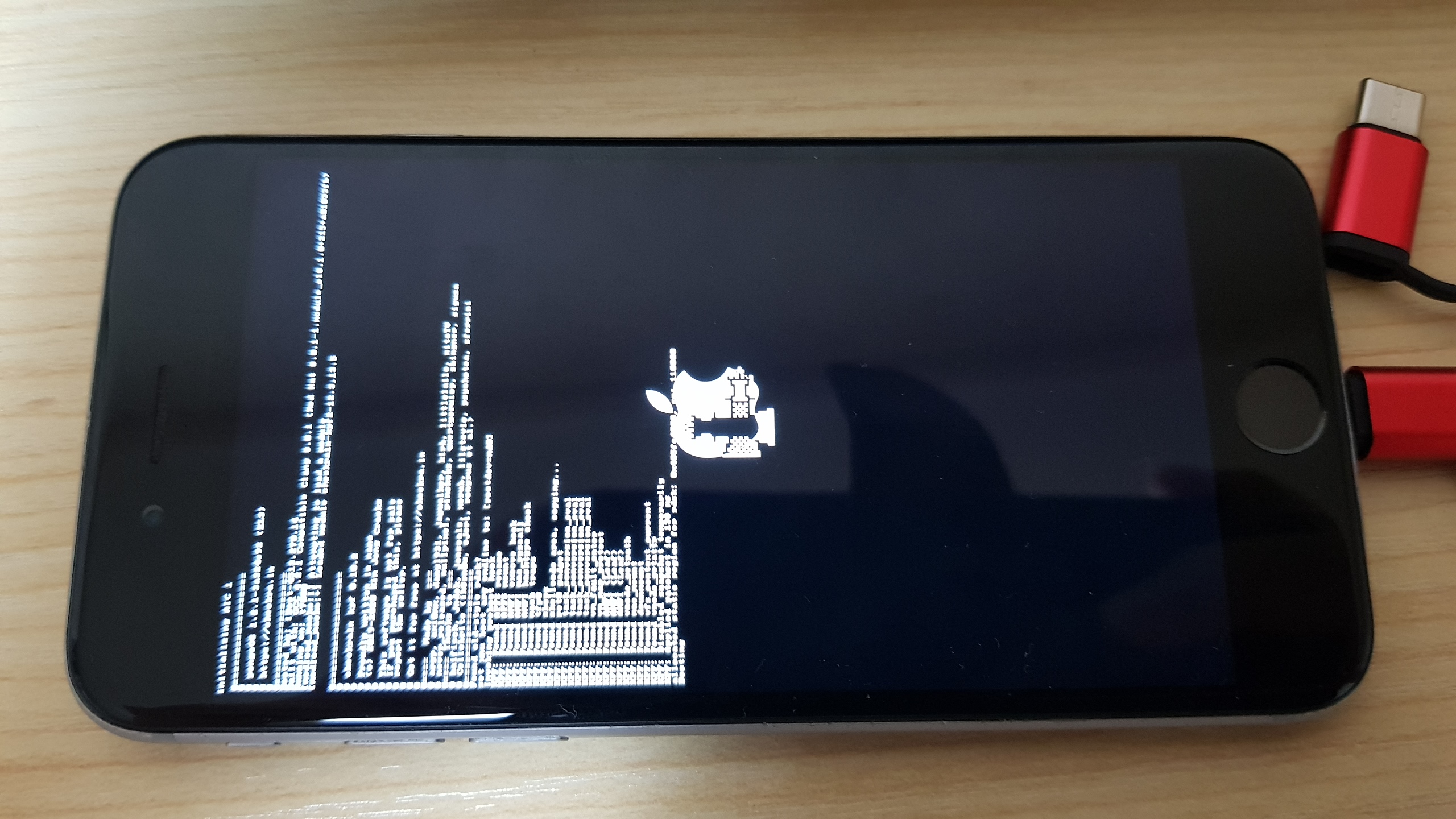 잠시 대기 하고 있으면, 화면에 작은 글씩들이 촤르르~ 지나가면서 jailbreak, 일명 탈옥을 하게 된다.