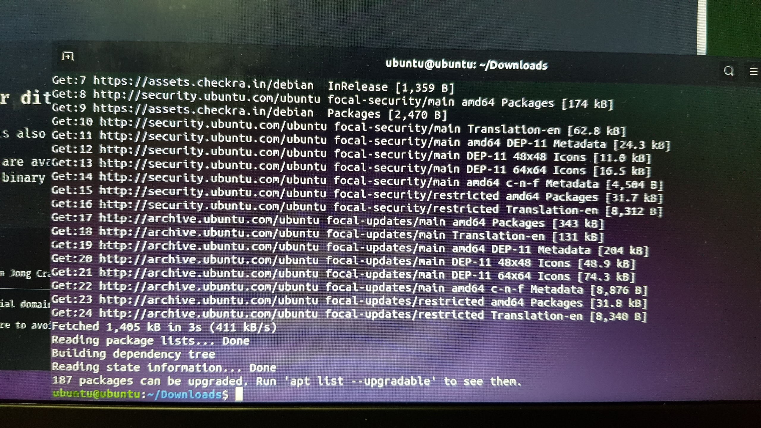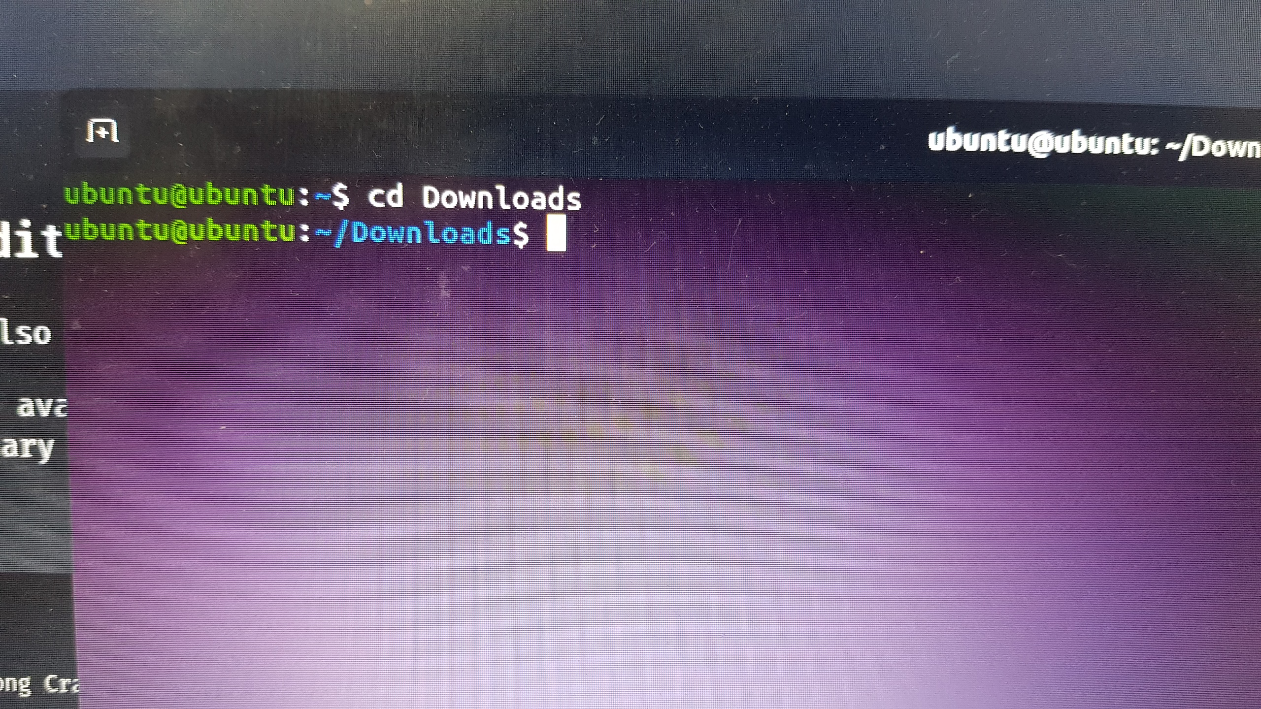 터미널에서 cd Downloads 를 입력하여 Firefox 에서 다운 받은 파일이 있는 위치로 이동한다.