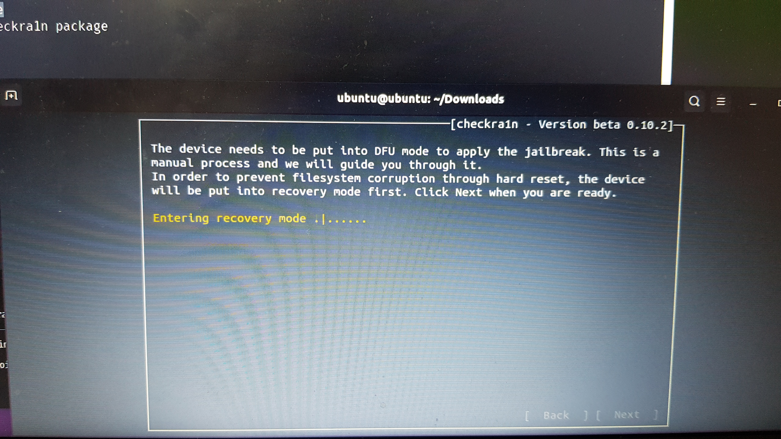Checkra1n 화면에서 아이폰이 연결된 정보가 표시된다.