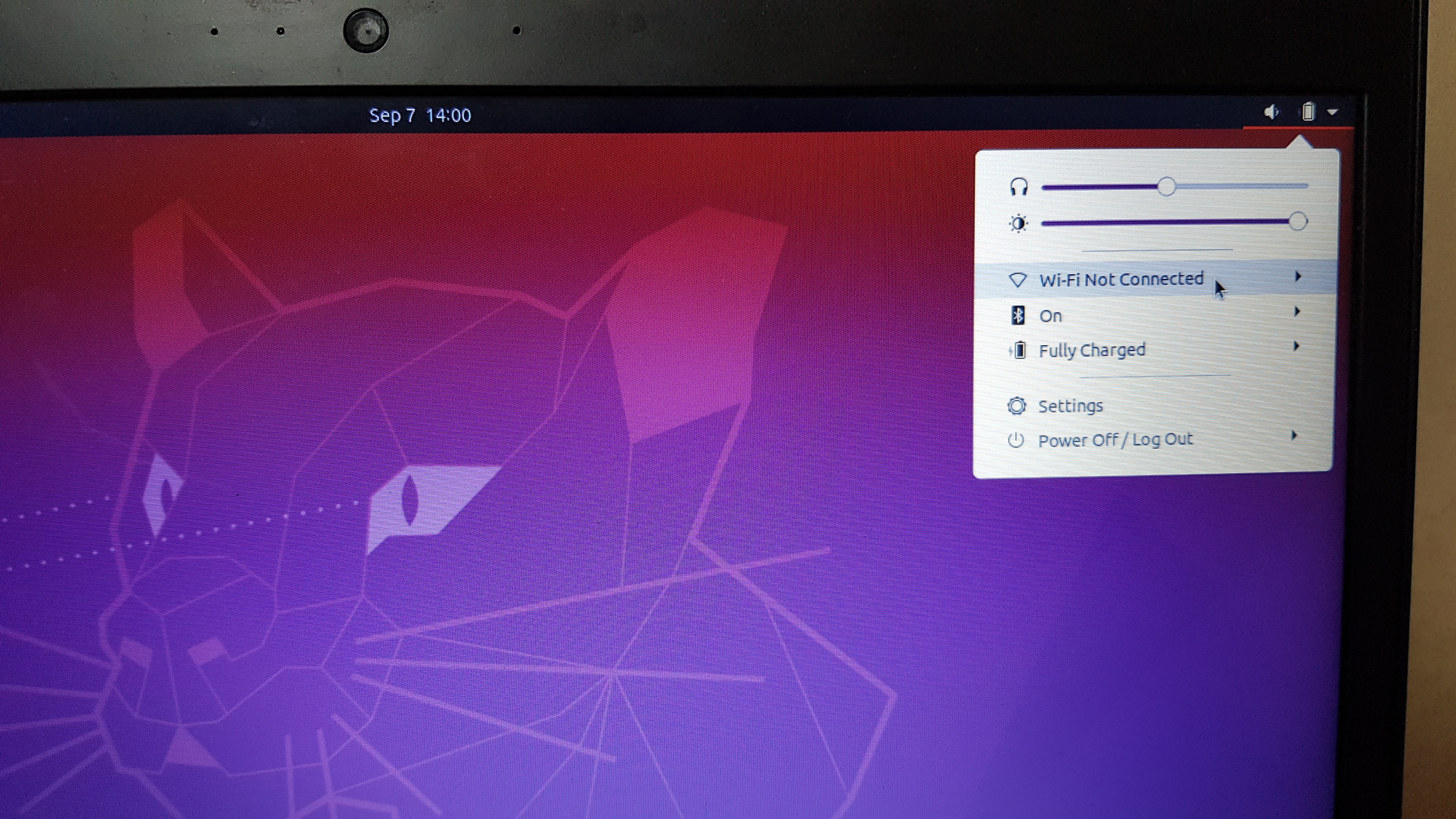 Ubuntu가 실행 되면 우측 상단의 아이콘을 클릭하여 인터넷에 접속을 한다.
