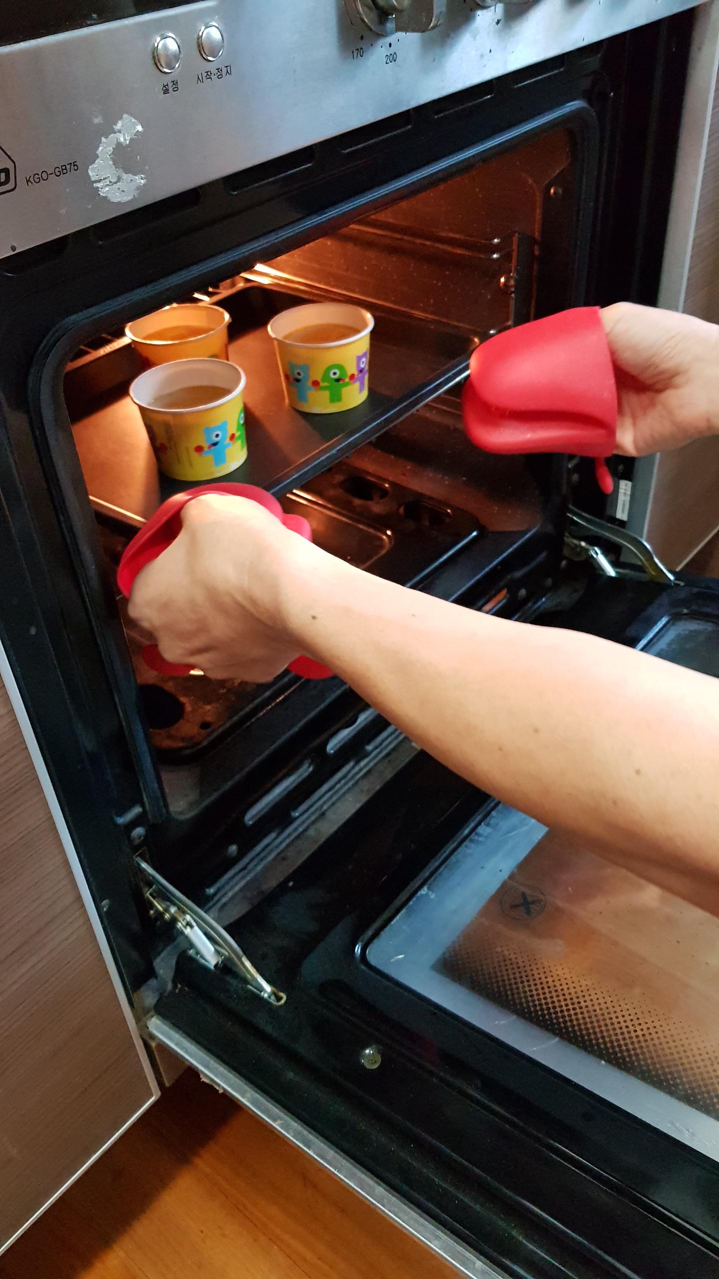 오븐에 넣는 것은 뜨거우니 화상에 조심해야 해서 아이에게 하기는 무리다.