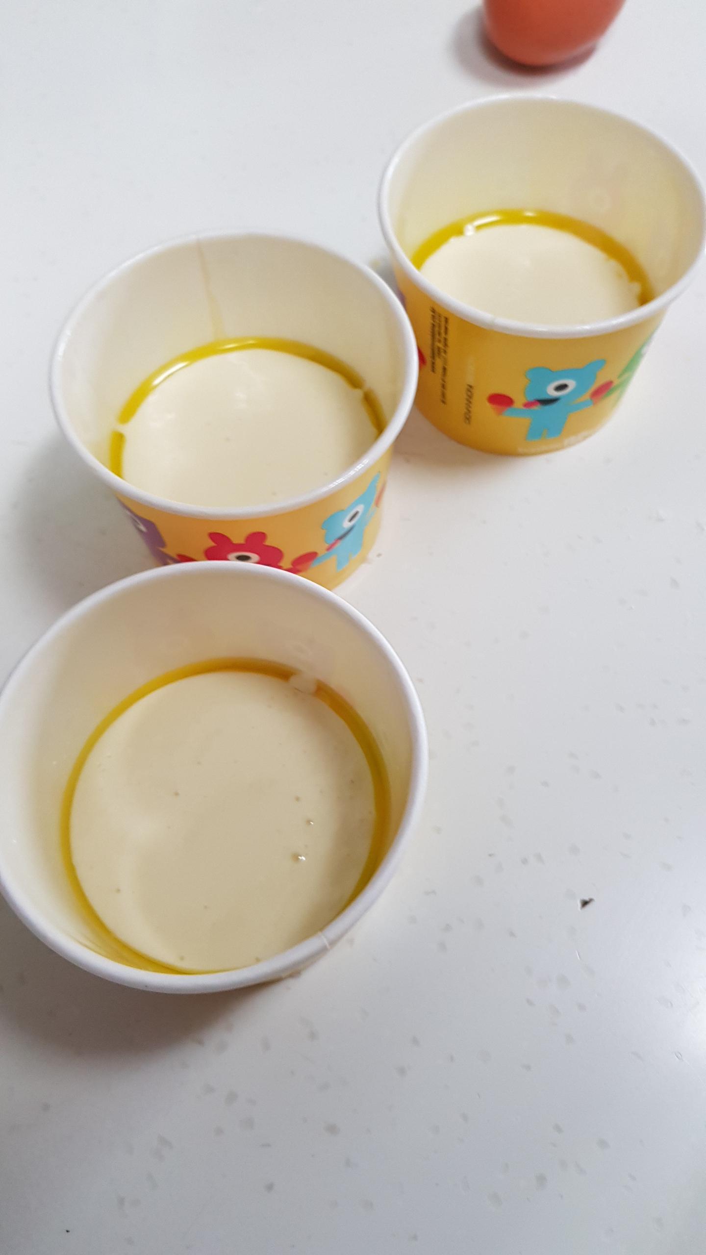식용유가 잘 발라졌다면, 완성된 반죽을 종이컵의 반 정도씩 부어 놓는다.