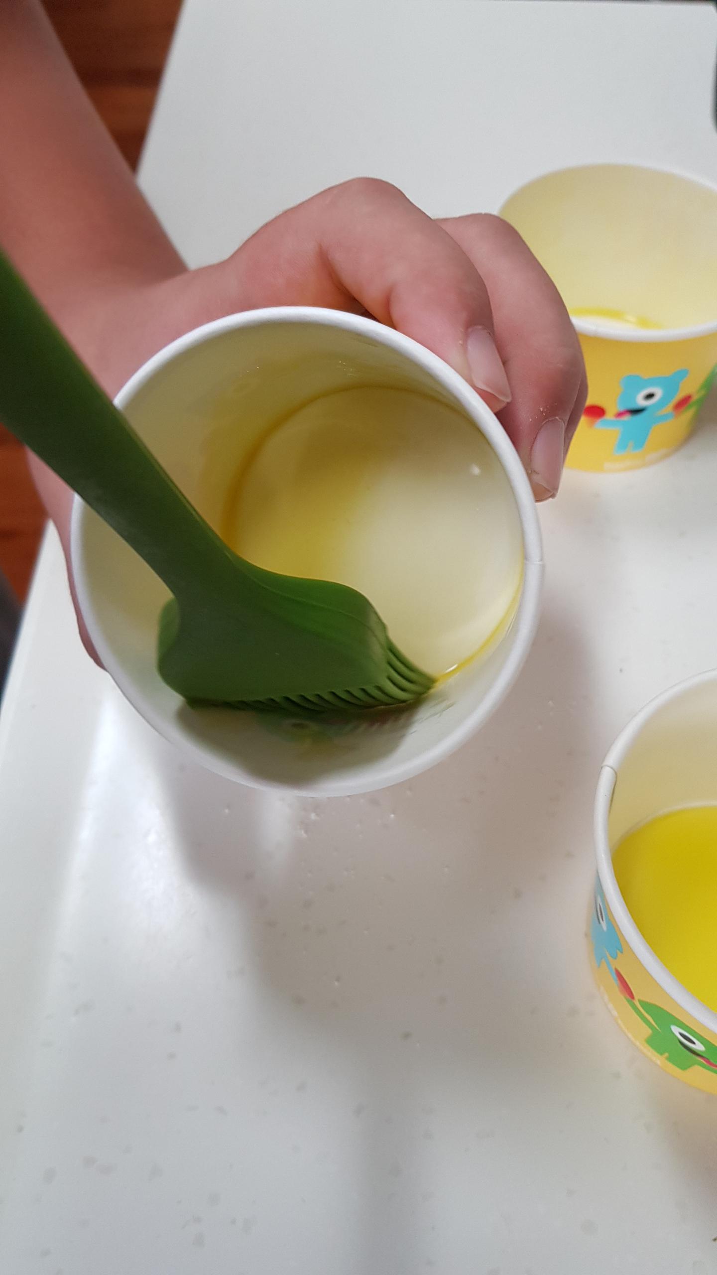 식용유를 바르는 것 또한 아이가 재미있게 할 수 있다.