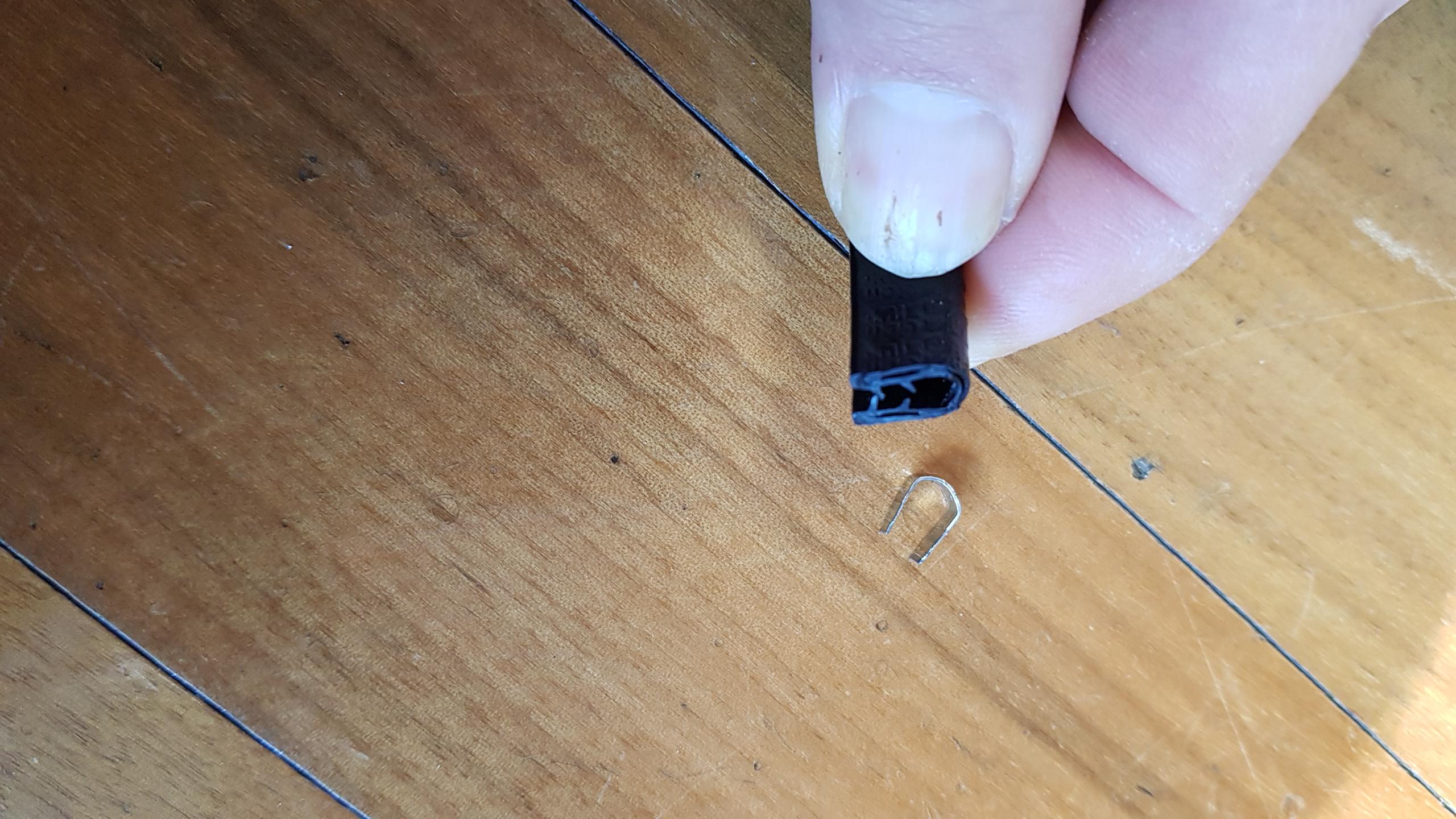 롱노우즈 펜치로 몰딩 양쪽 끝 부분의 U자형 심을 빼낸다.