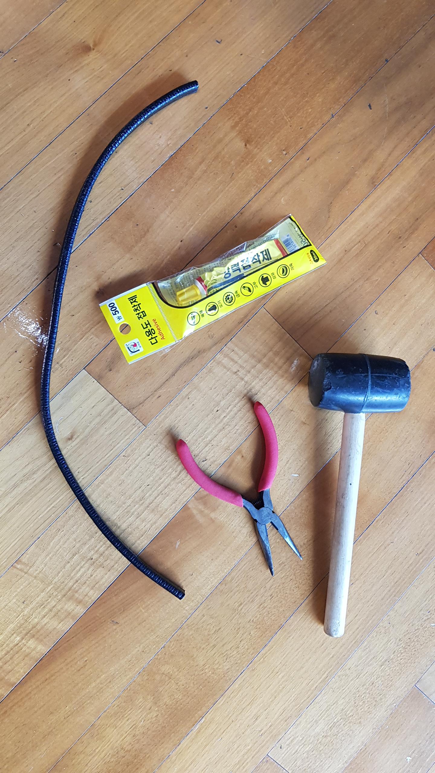 자동차용 문틈 몰딩, 고무망치, 니뻐? 로 불리는 롱노우즈 펜치가 있으면 된다.