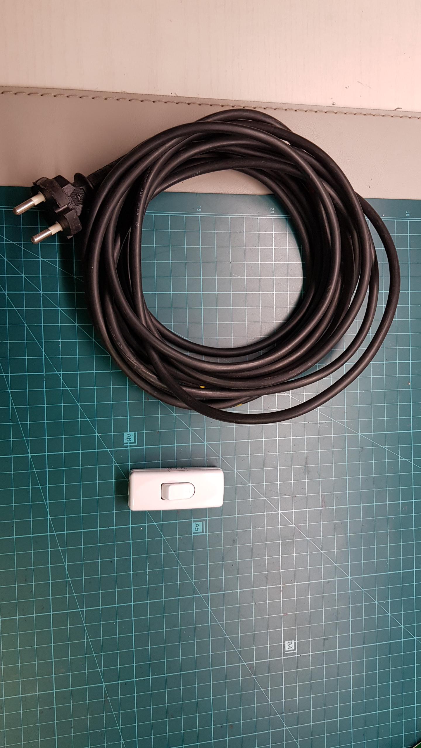 고장난 진공청소기의 코드가 약 6미터 정도 되기에, 마침 고장난 청소기의 긴 전선줄을 잘라 사용한다.
