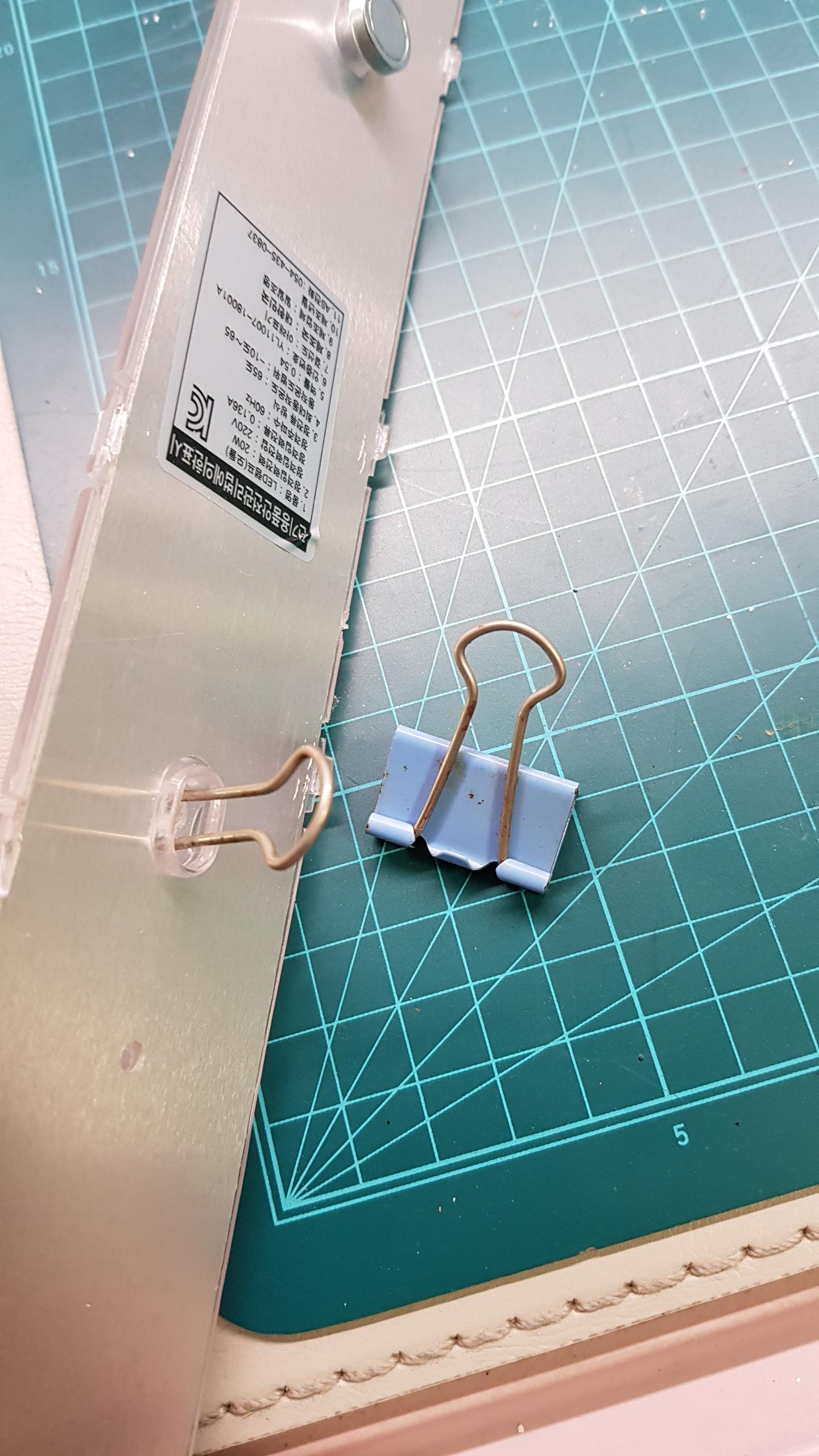 필자의 경우 클립부분의 핀을 사용하여 램프의 내부에 걸어 고리를 만들어 주었다.