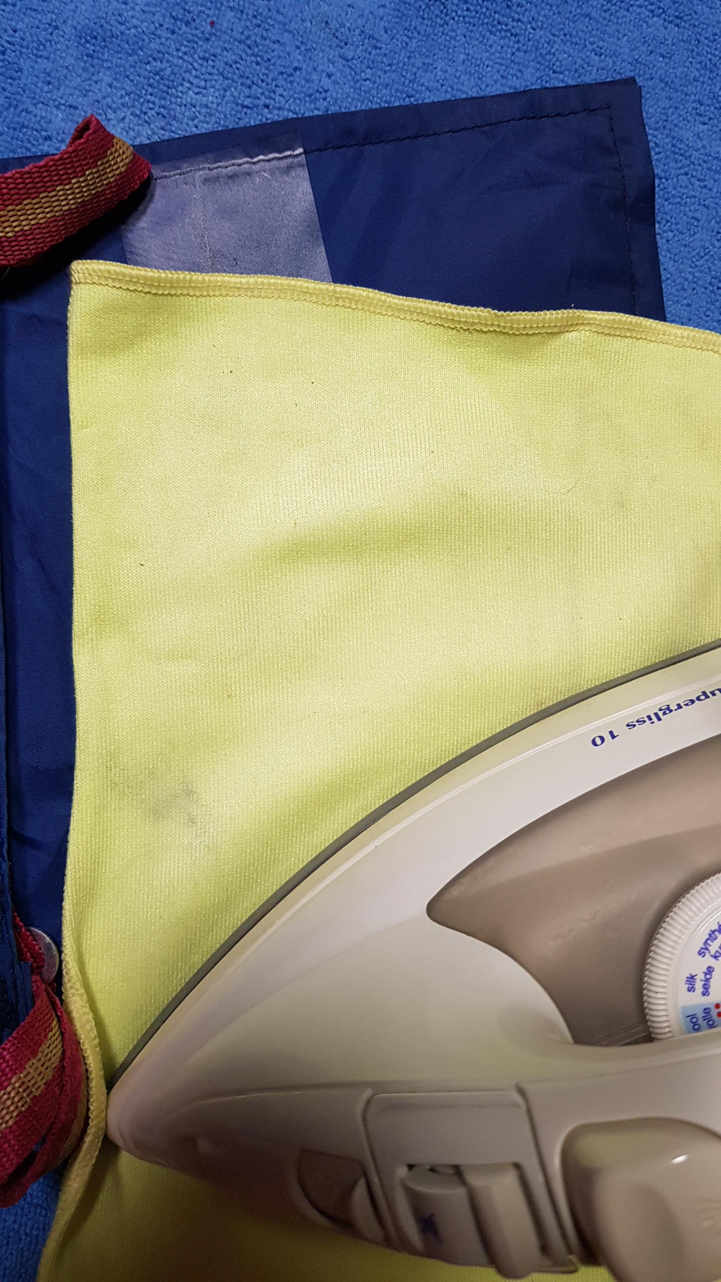다리미 판 위에 텐트를 놓고 다림질을 하면 심실링 테이프를 접착하기 편하다.